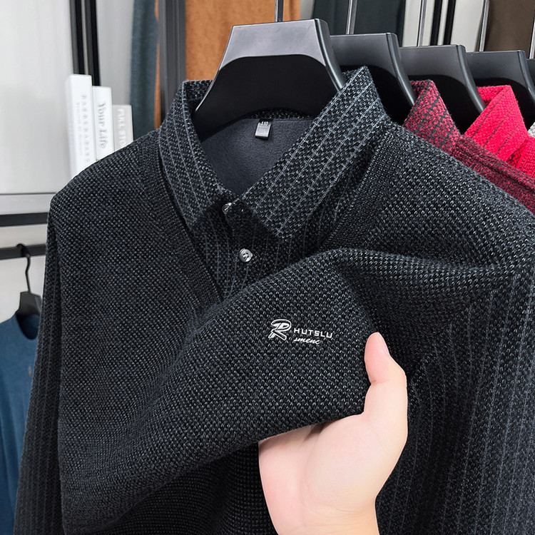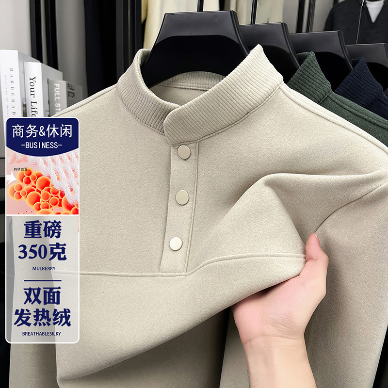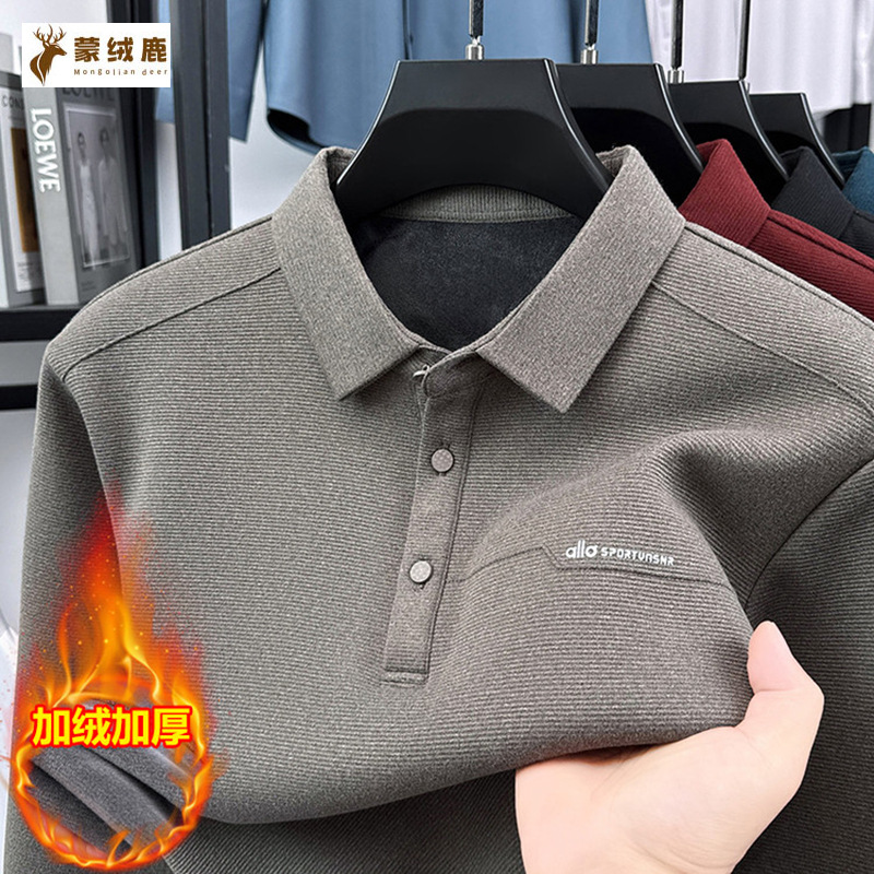 直播爆款男士加绒加厚T恤中年爸爸冬季时尚保暖打底内搭翻领上衣