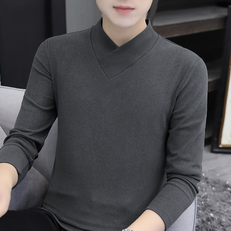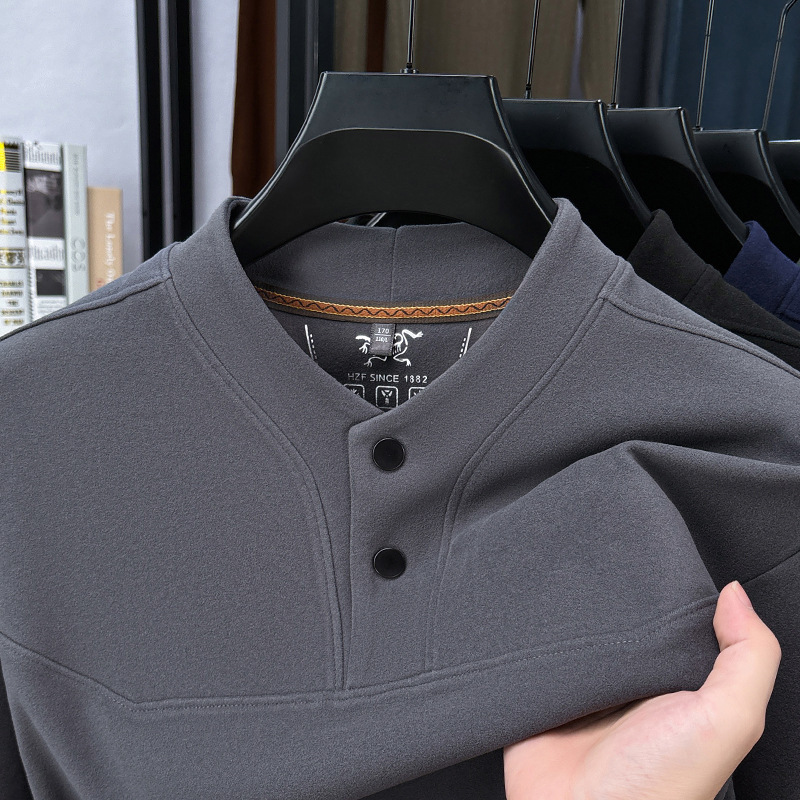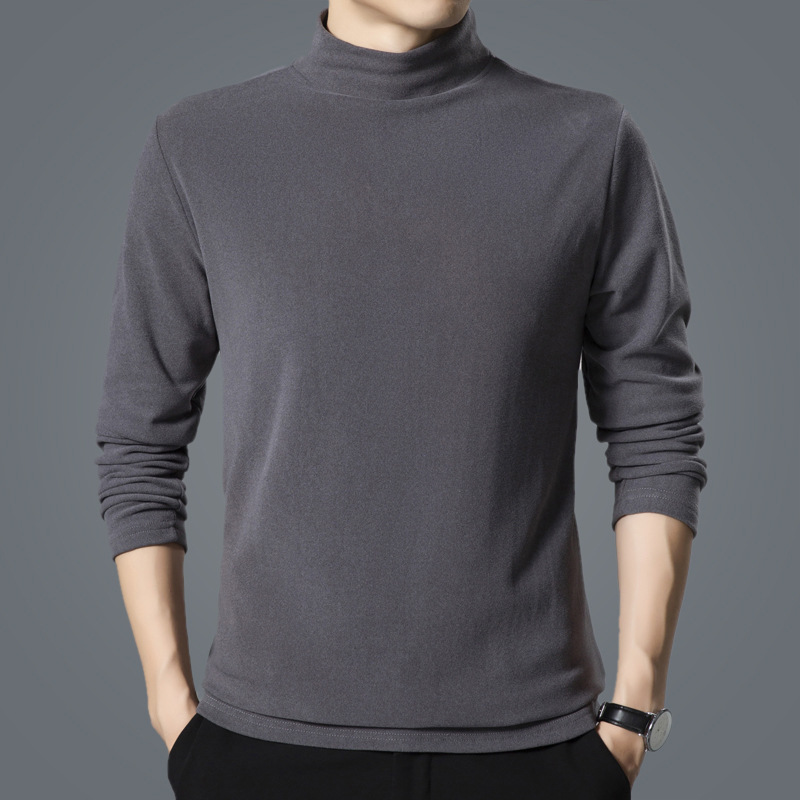 秋冬の新型徳絨毛tシャツ中年男性の半高襟純色保温シンプルな長袖の中に上着を着ます。