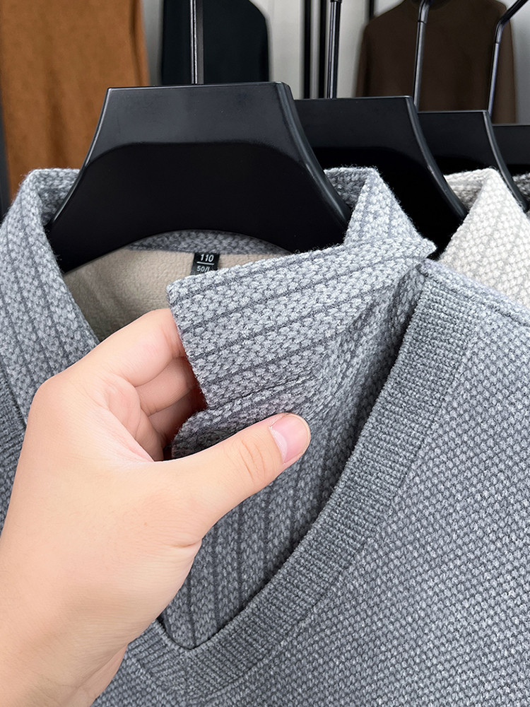 中年男性ベルベット厚手セーター冬の新型保温ファッション半高襟ニットウェアの上着卸売り