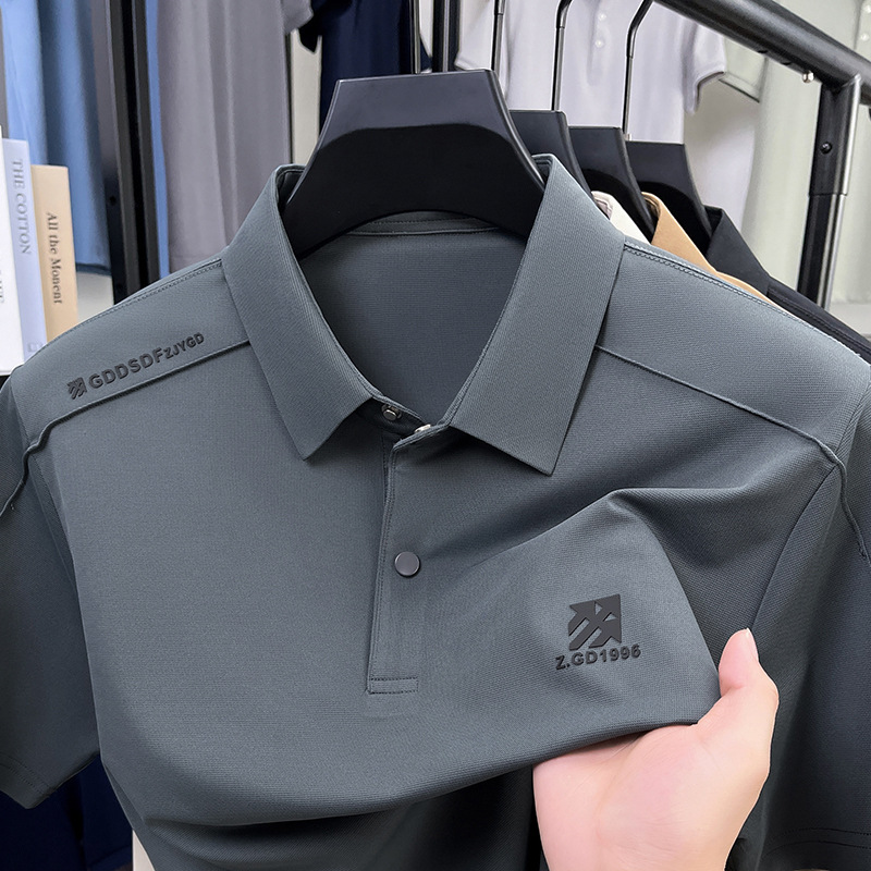夏の半袖の氷の糸の通気性の男性のtシャツの中で年配のお父さんはpoloの格子縞の襟の上着を詰めて越境の対外貿易を越えます。