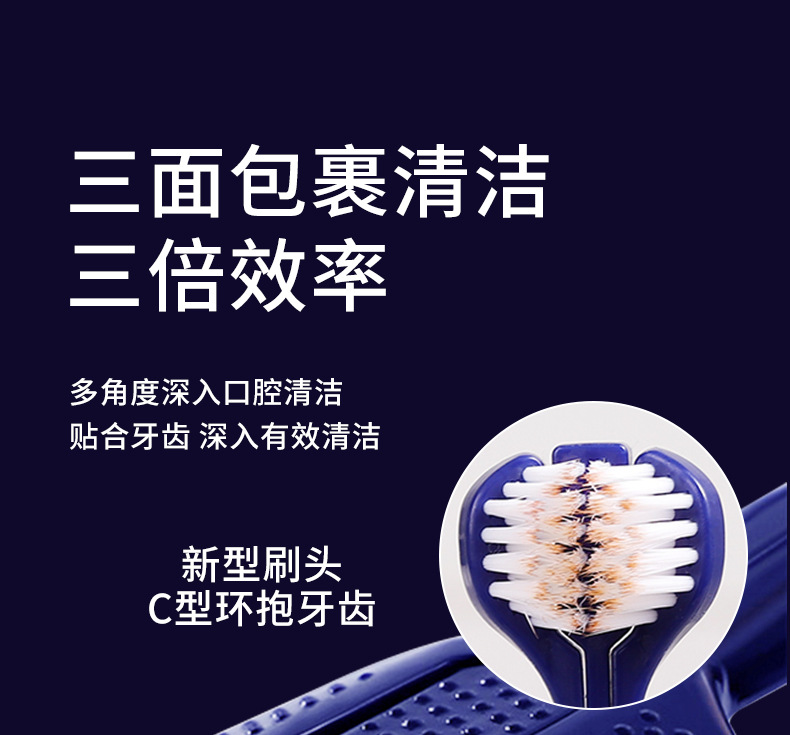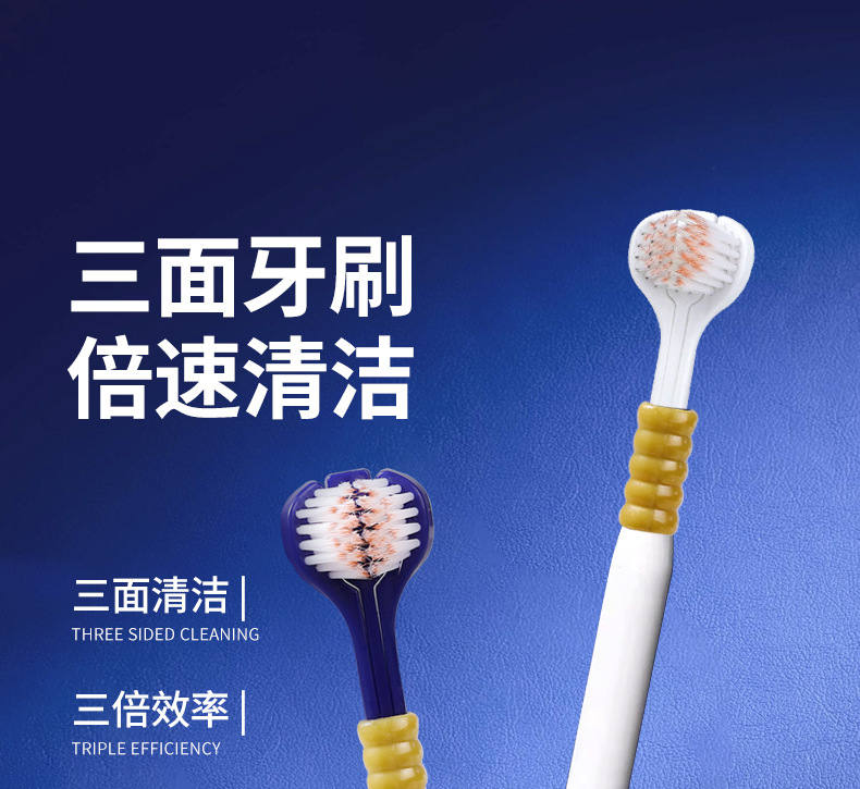 新型三面刷刷头牙刷批发三面牙刷护龈清洁刷三头牙刷软毛新款宽头
