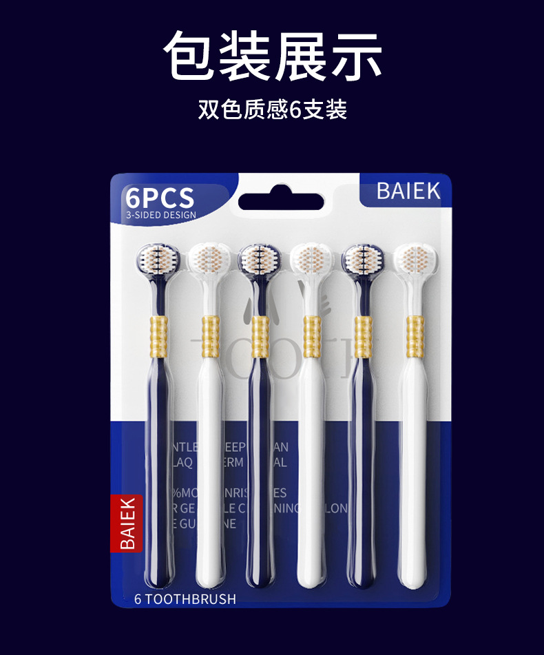 【六本入り】C端爆金高級軟毛三面歯ブラシ成人家庭用歯茎三頭歯ブラシ卸売り