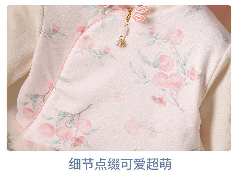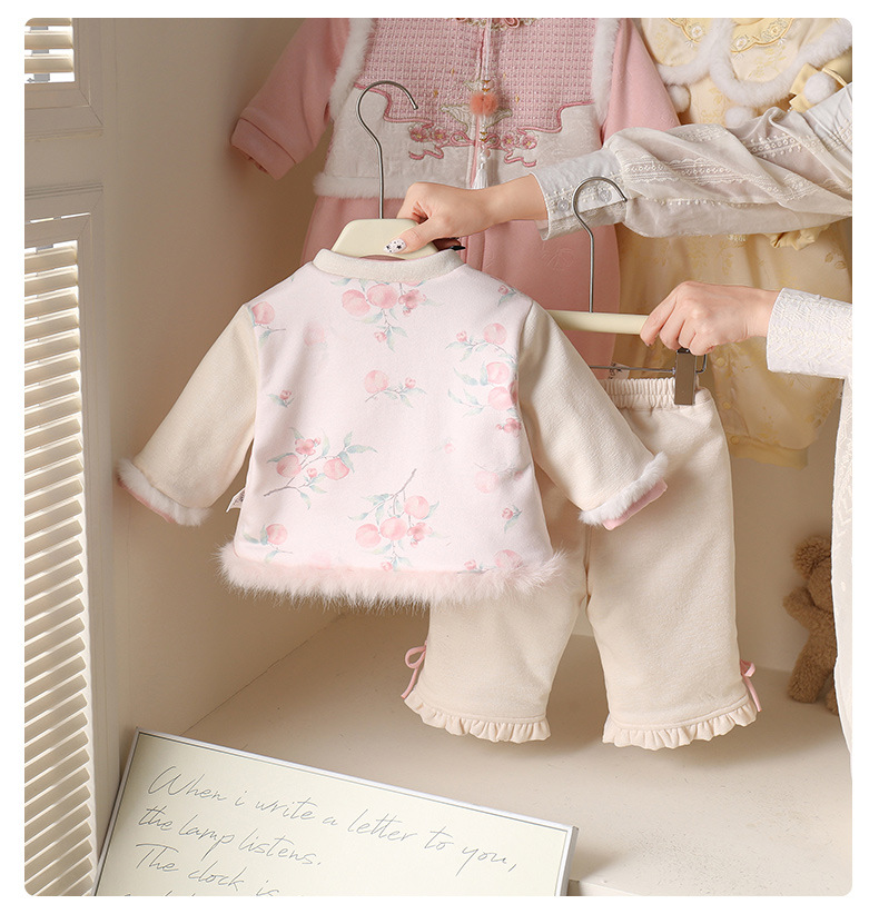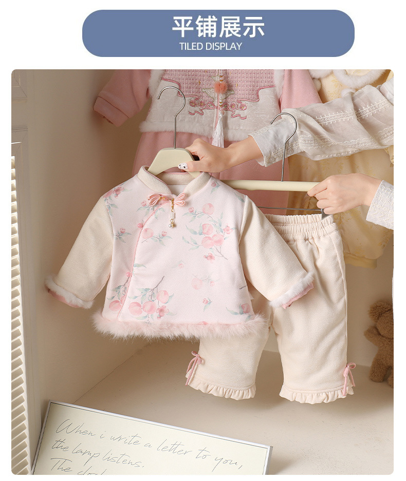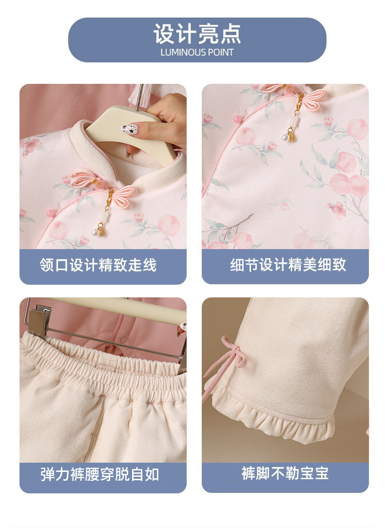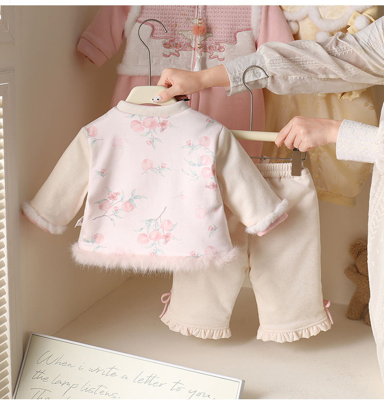 冬装女宝宝加绒夹棉保暖两件套女童中式唐装国风抓周岁宴套装礼服