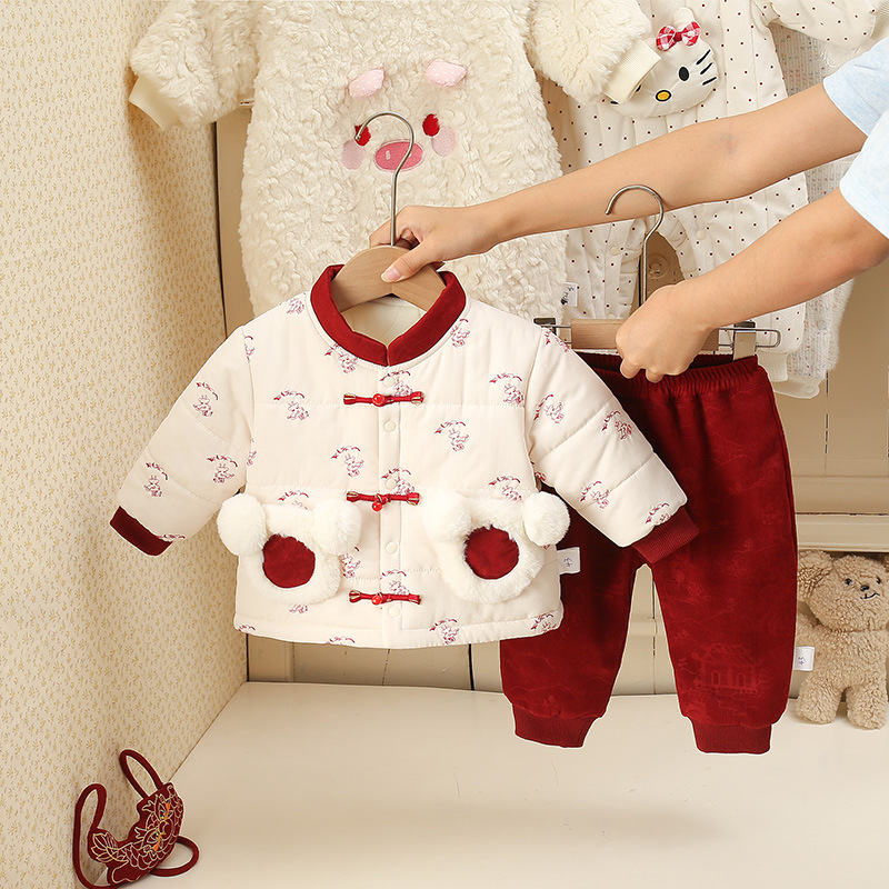 周岁礼服套装冬季加厚保暖新中式唐装两件套婴儿红色新年服拜年服