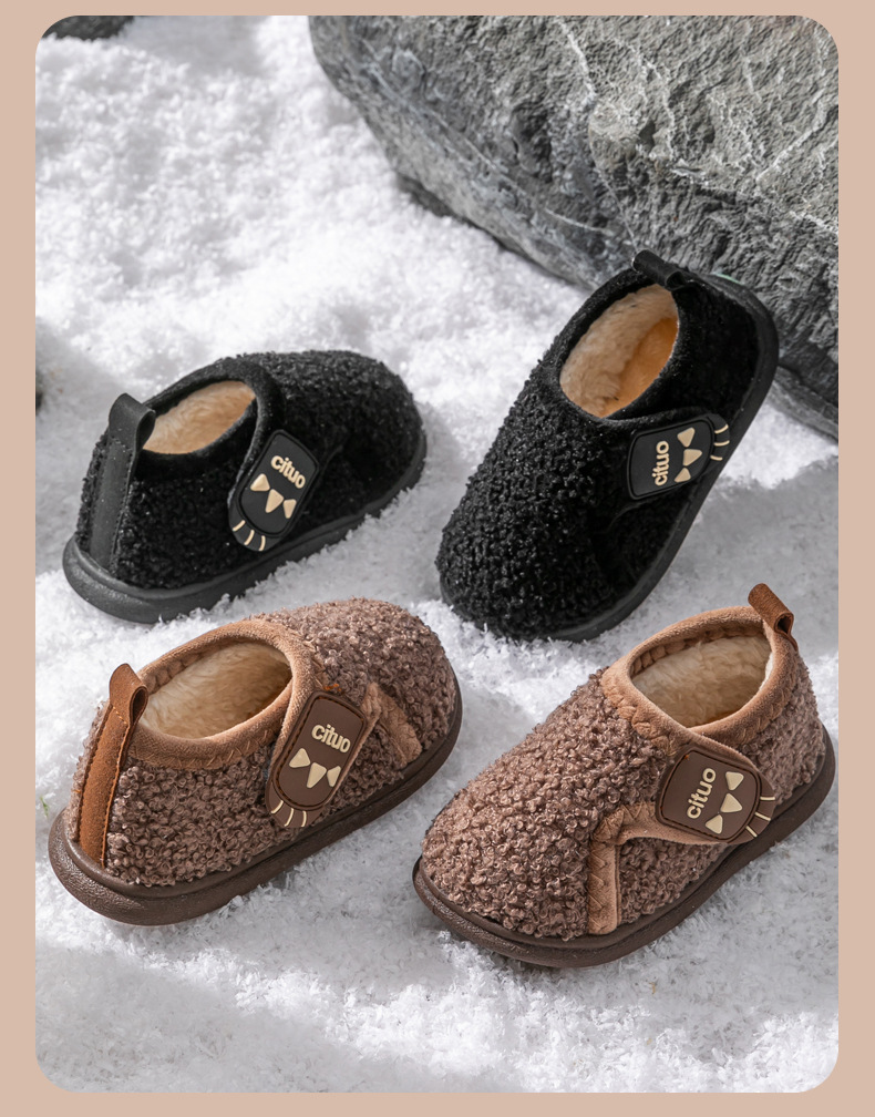 (严选)巴布豆儿童棉鞋男童保暖加绒棉靴冬包根棉拖鞋女孩雪地靴