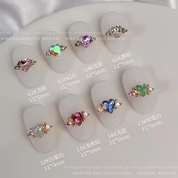新しいネイルアートリングの完成品のネットの赤い愛のドリルのガラスのドリルのdiyの立体の爪の装飾の部品