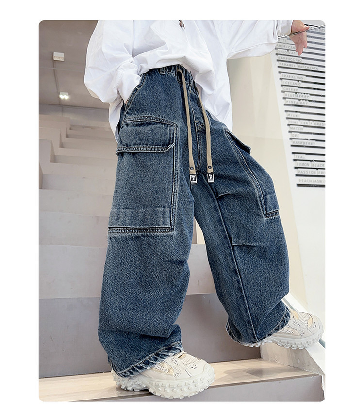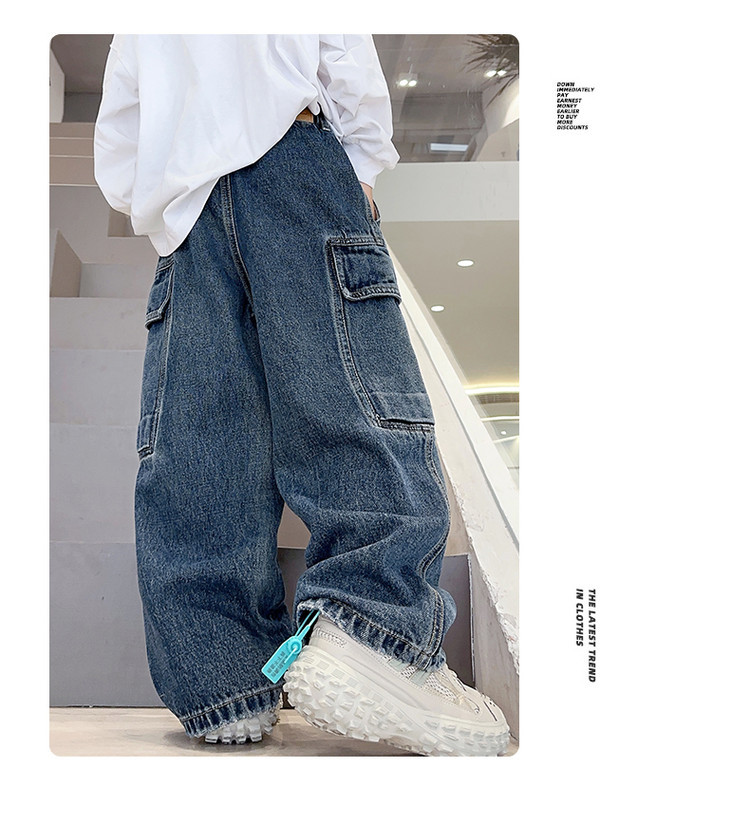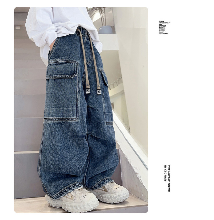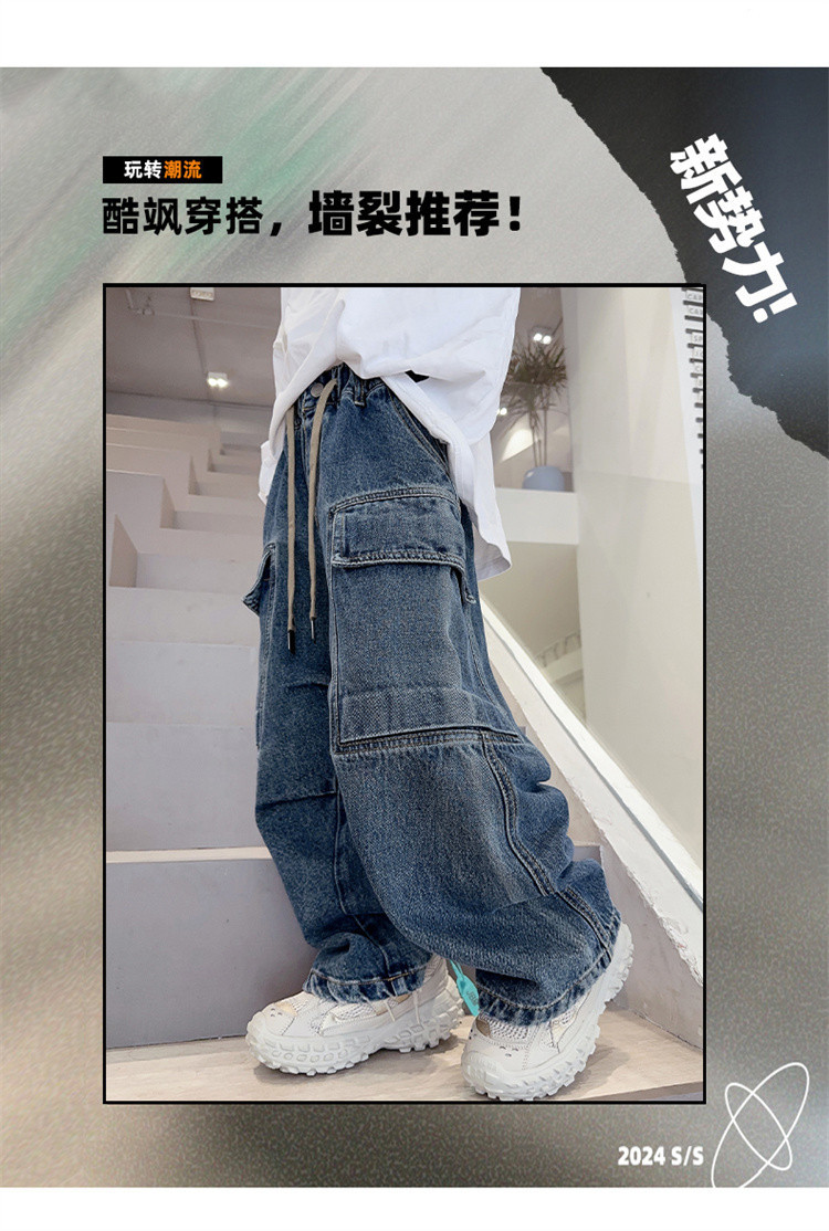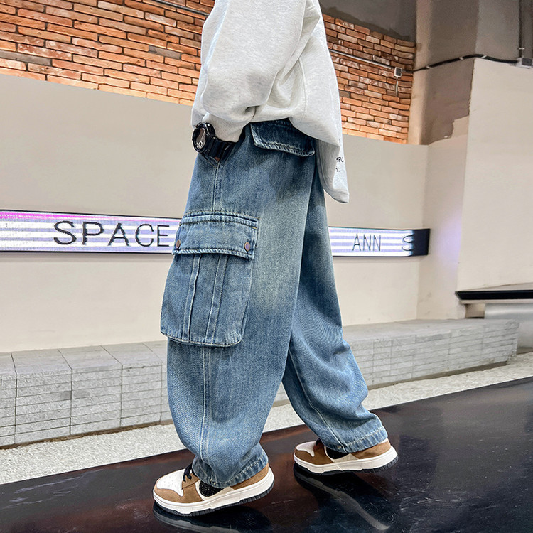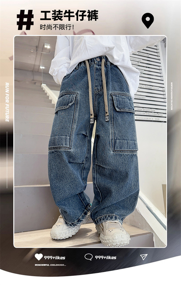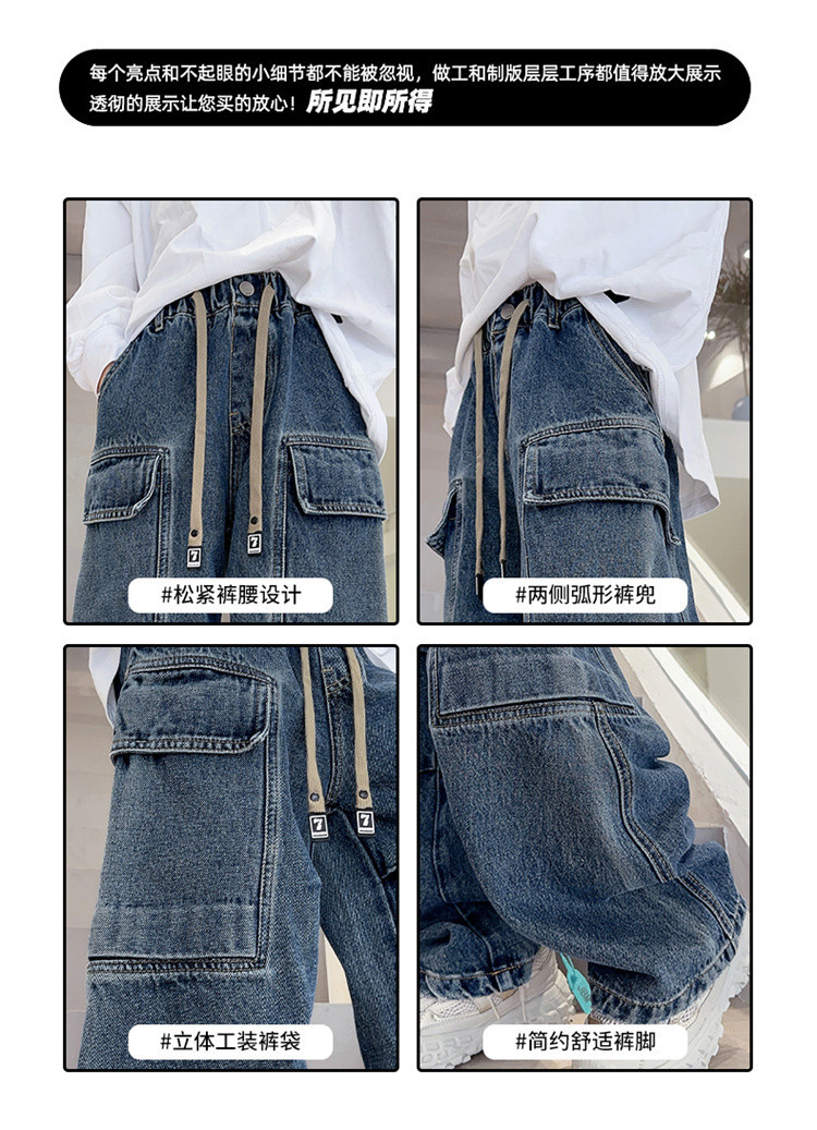 春秋新款男童牛仔工装裤儿童牛仔裤中大童宽松复古潮流直筒裤下装