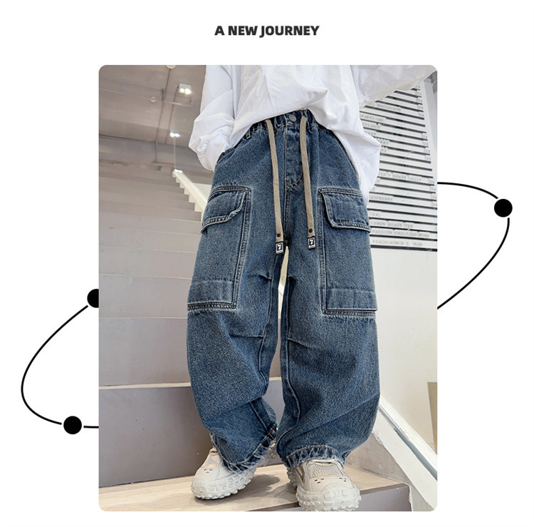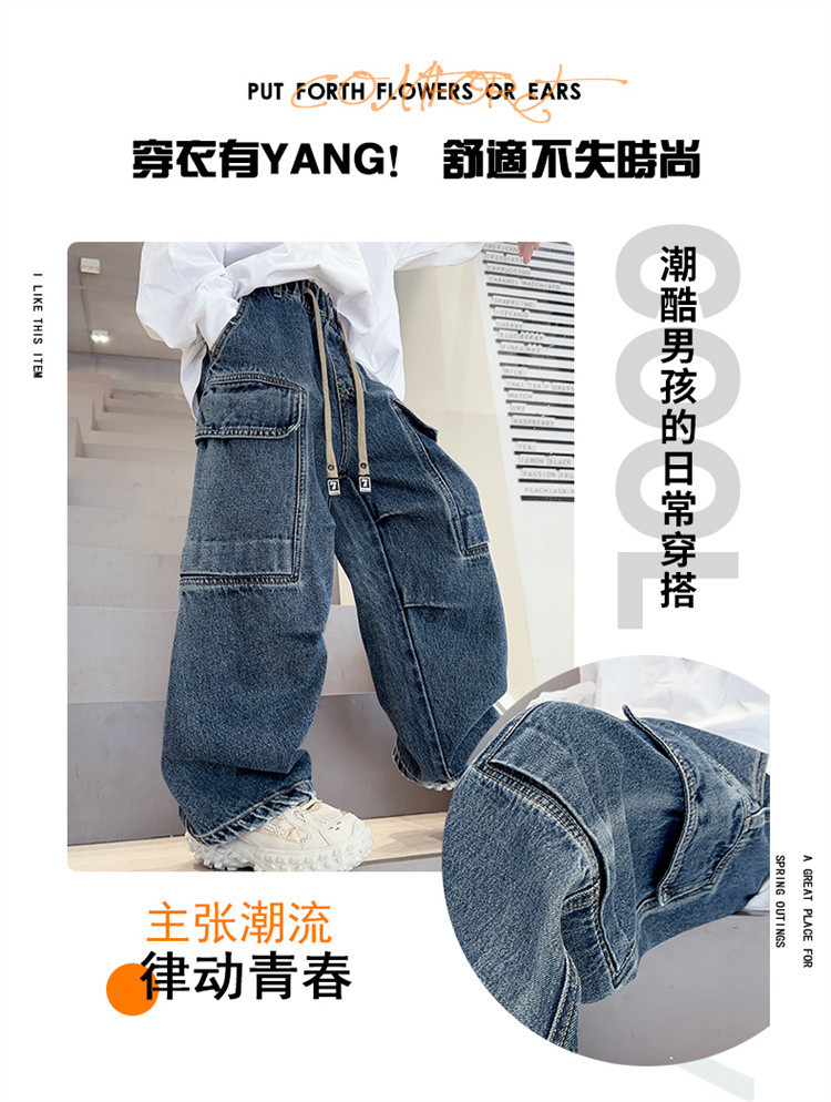 儿童裤子春秋款宽松工装牛仔裤新款中大男童洋气韩版阔腿长裤潮