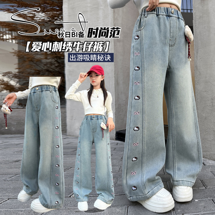 女の子ズボン春秋2025新型春装子供直筒広脚ズボン女の子大童ジーンズ中学校学生