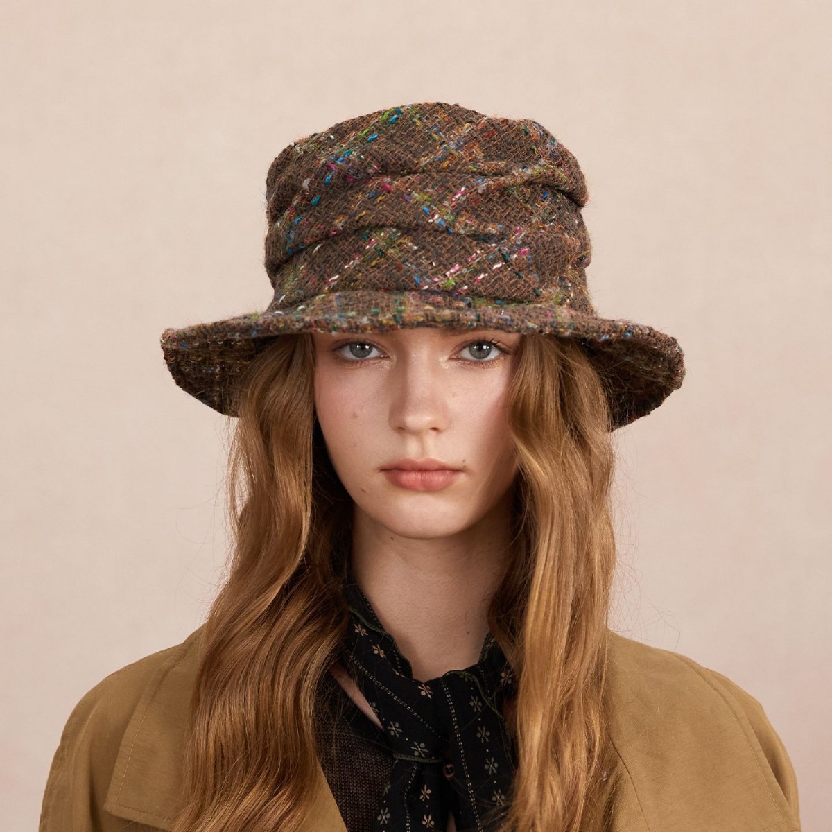批发韩国2025年早秋新款小众设计毛呢渐变渔夫帽大头围显脸小盆帽