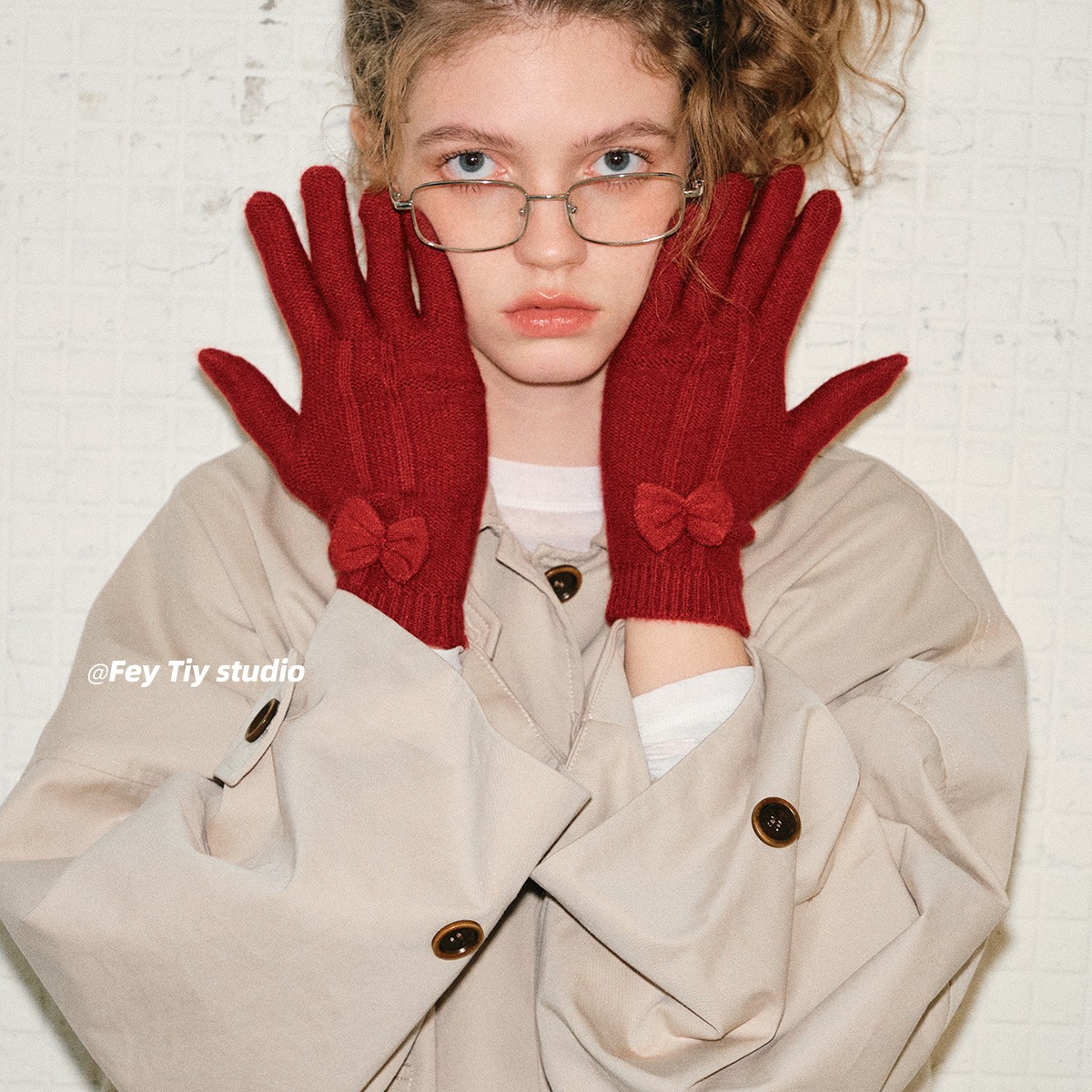 出口日韩2025新蝴蝶结可触屏分指韩国ins可爱针织毛线五指羊毛手