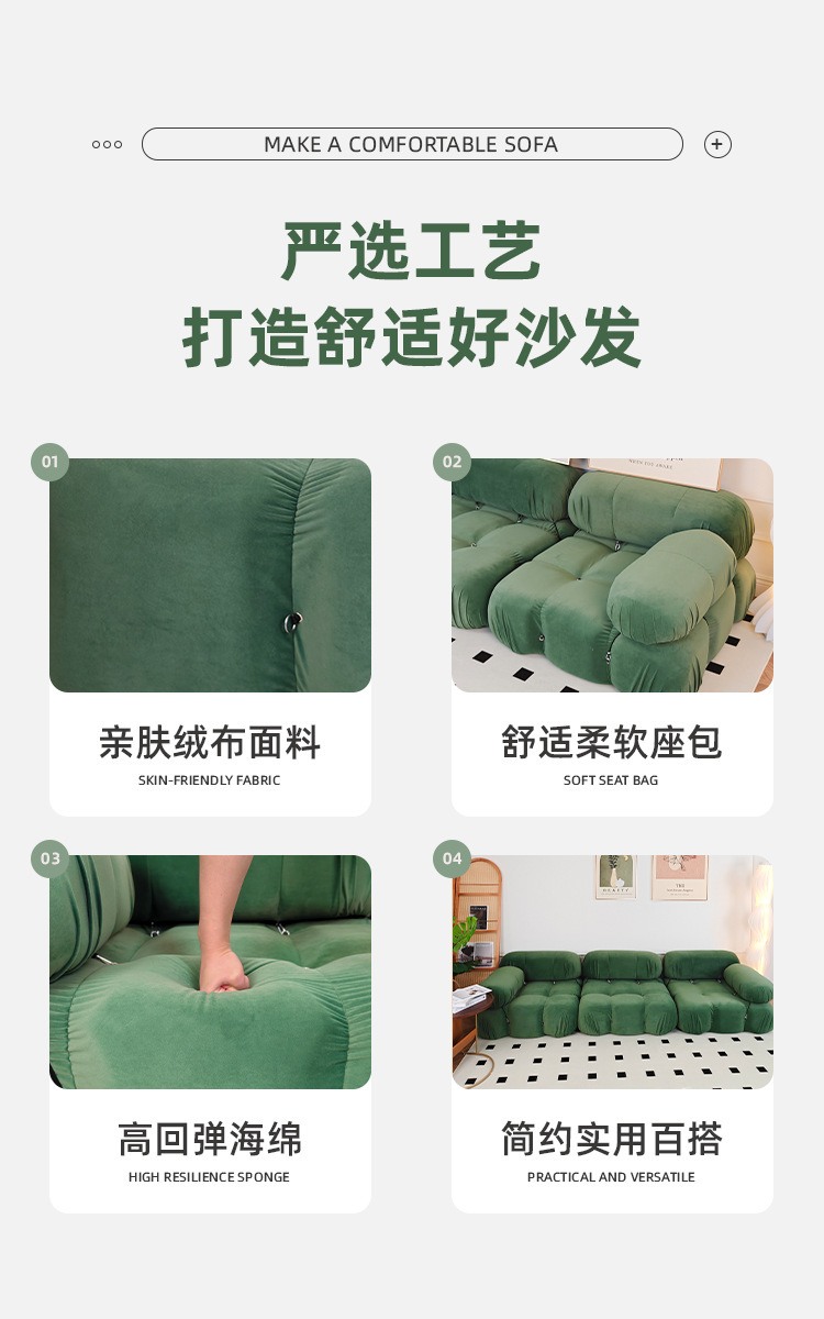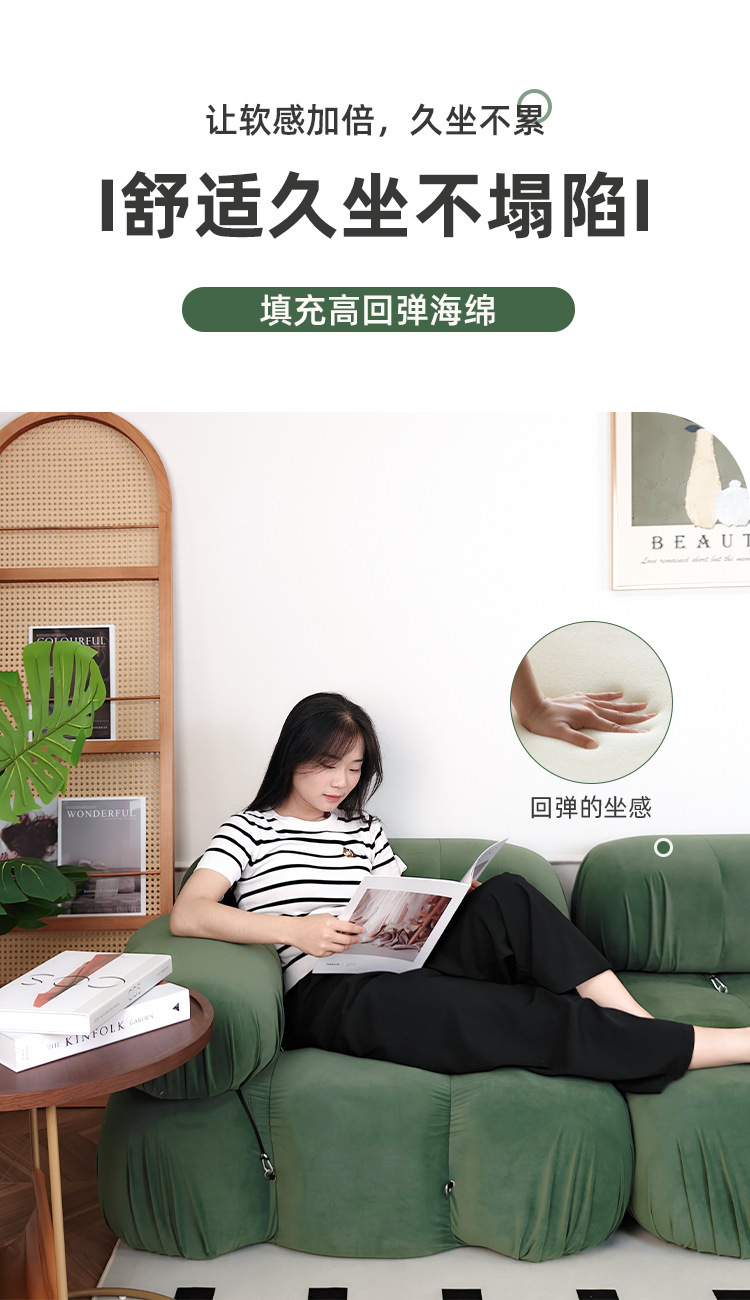 跨境马里奥沙发网红布艺客厅小户型卧室双人小型法式模块沙发