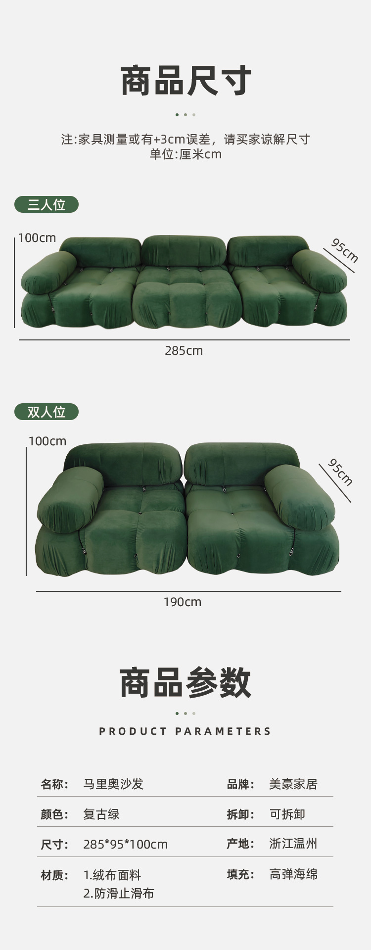 颜色 墨绿色三人位(285*95*100cm),乳白色三人位(285*95*100cm),单个95*95*100cm(带扶手位),单个95*95*100cm(无扶手位)