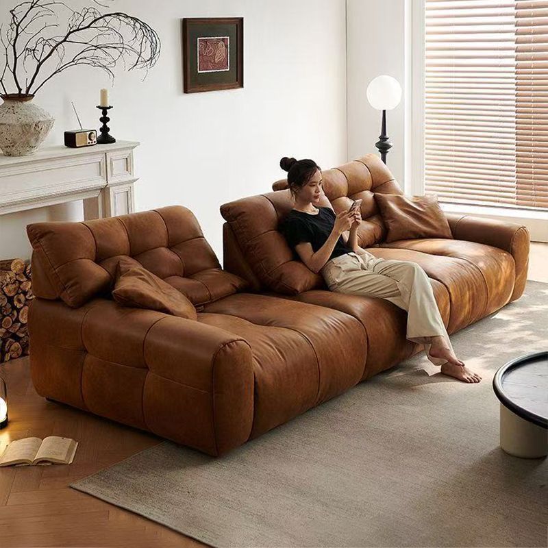中古风沙发客厅大小户型油蜡真皮焦糖色可移动靠背蒙特沙发