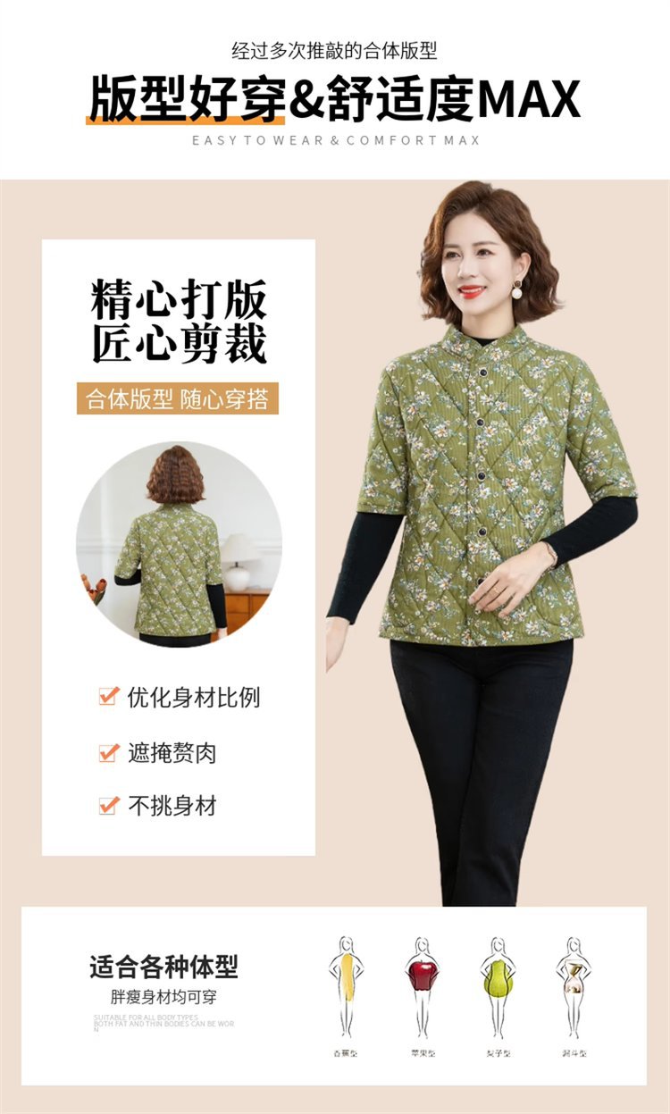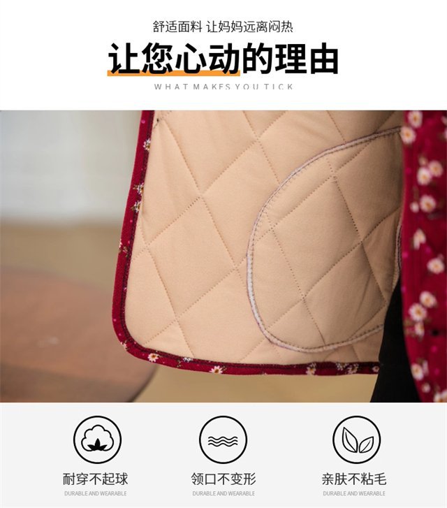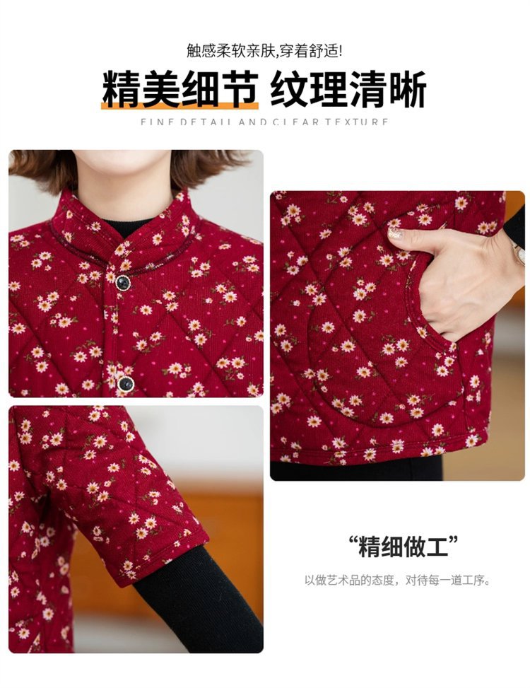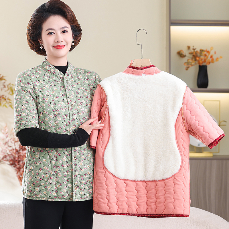 冬季加绒保暖棉衣外套妈妈中袖棉袄中老年中袖棉袄老太太棉马甲女