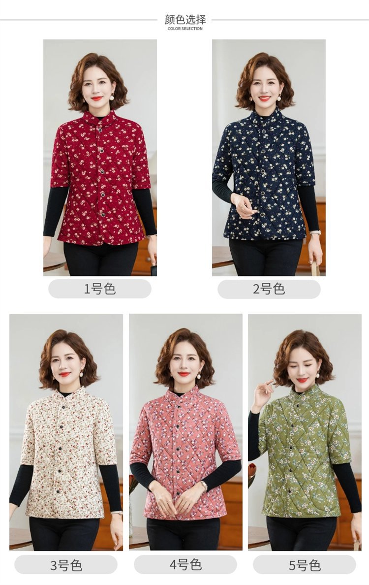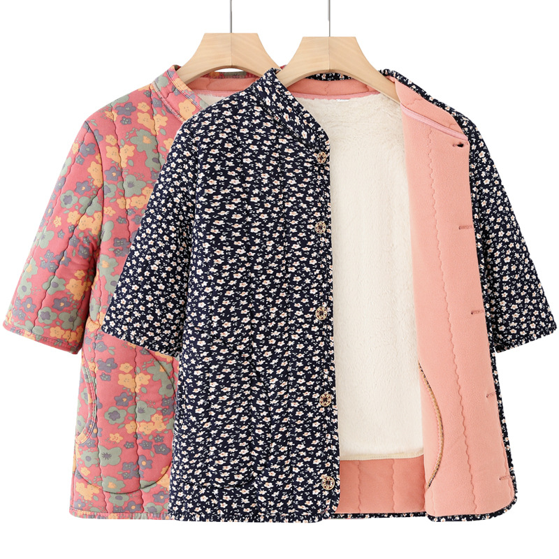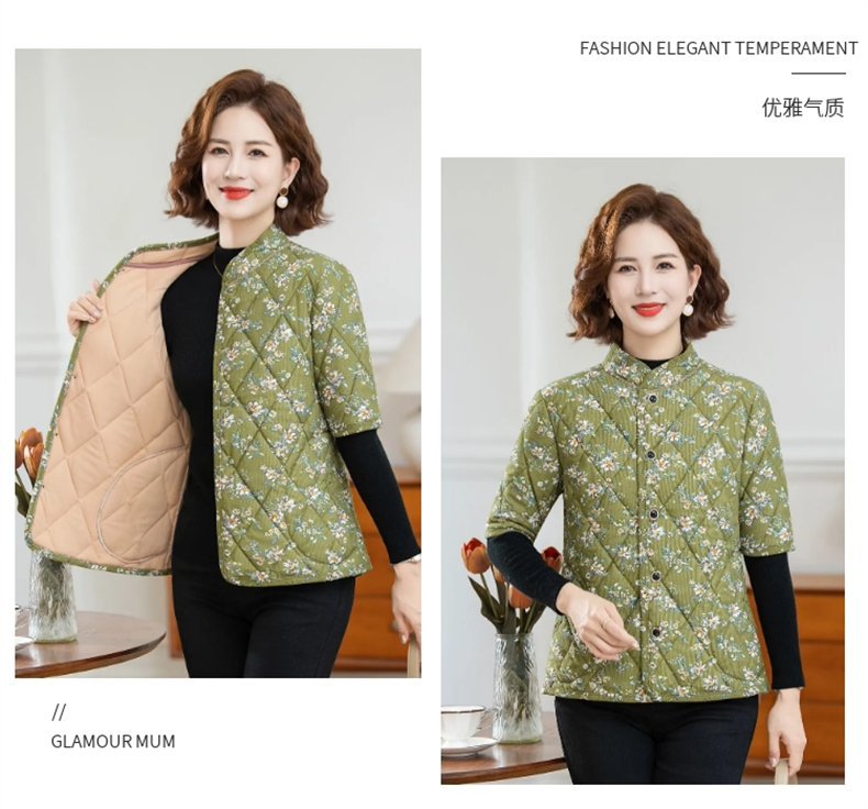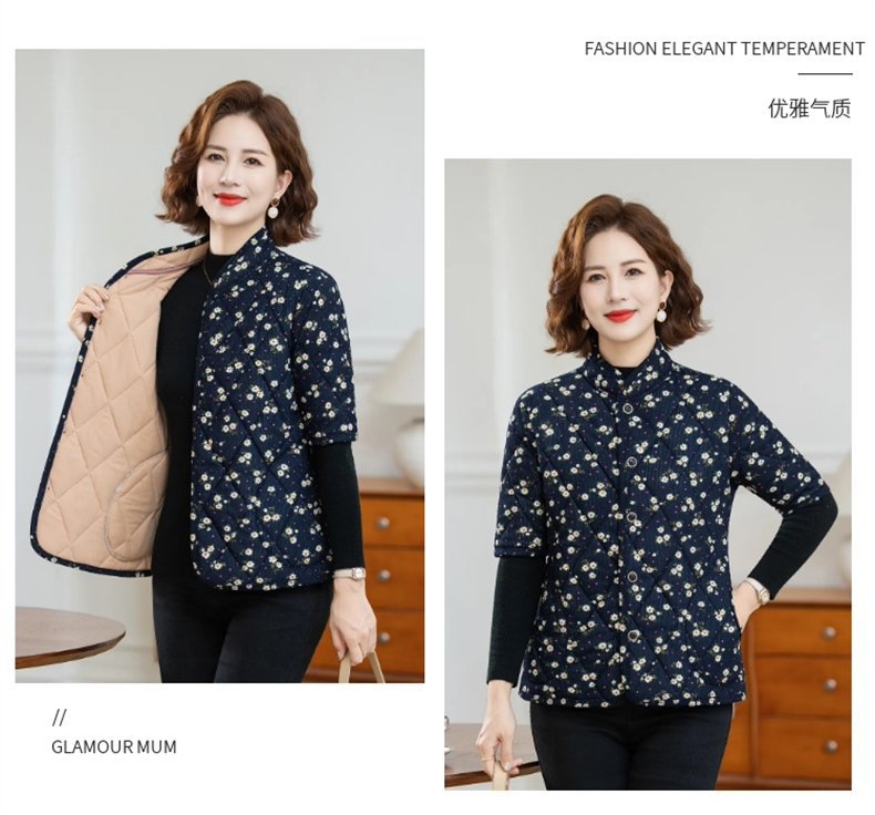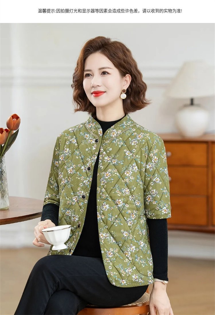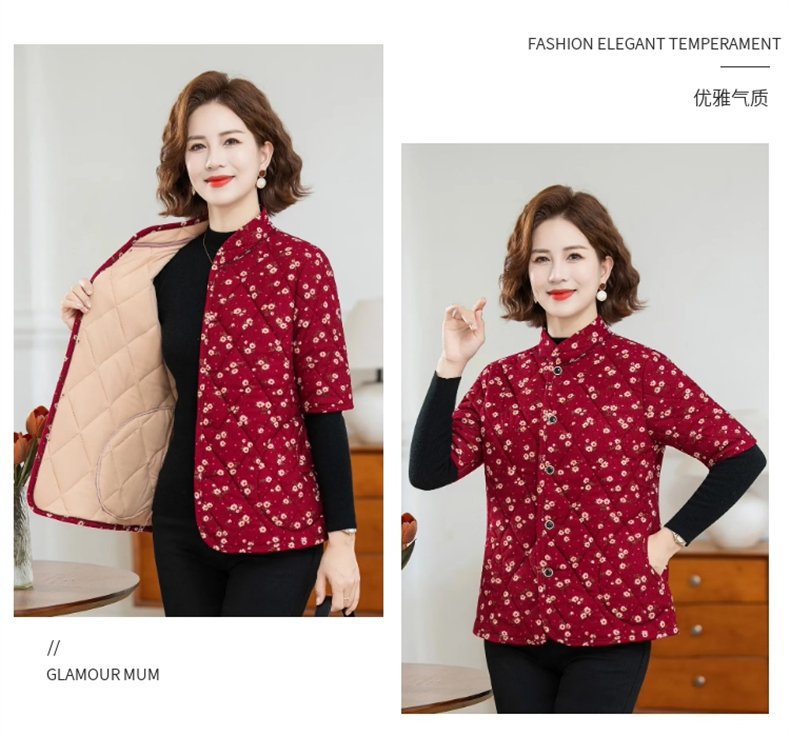 中高年婦人服秋冬中袖小綿服とベルベットの厚い立襟綿服おばあちゃんの短い冬の保温コート