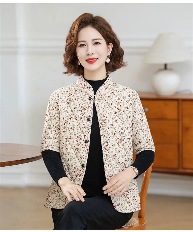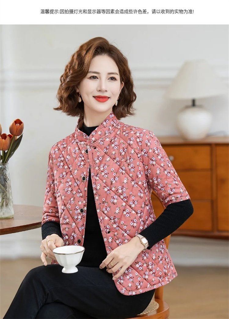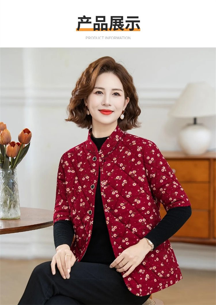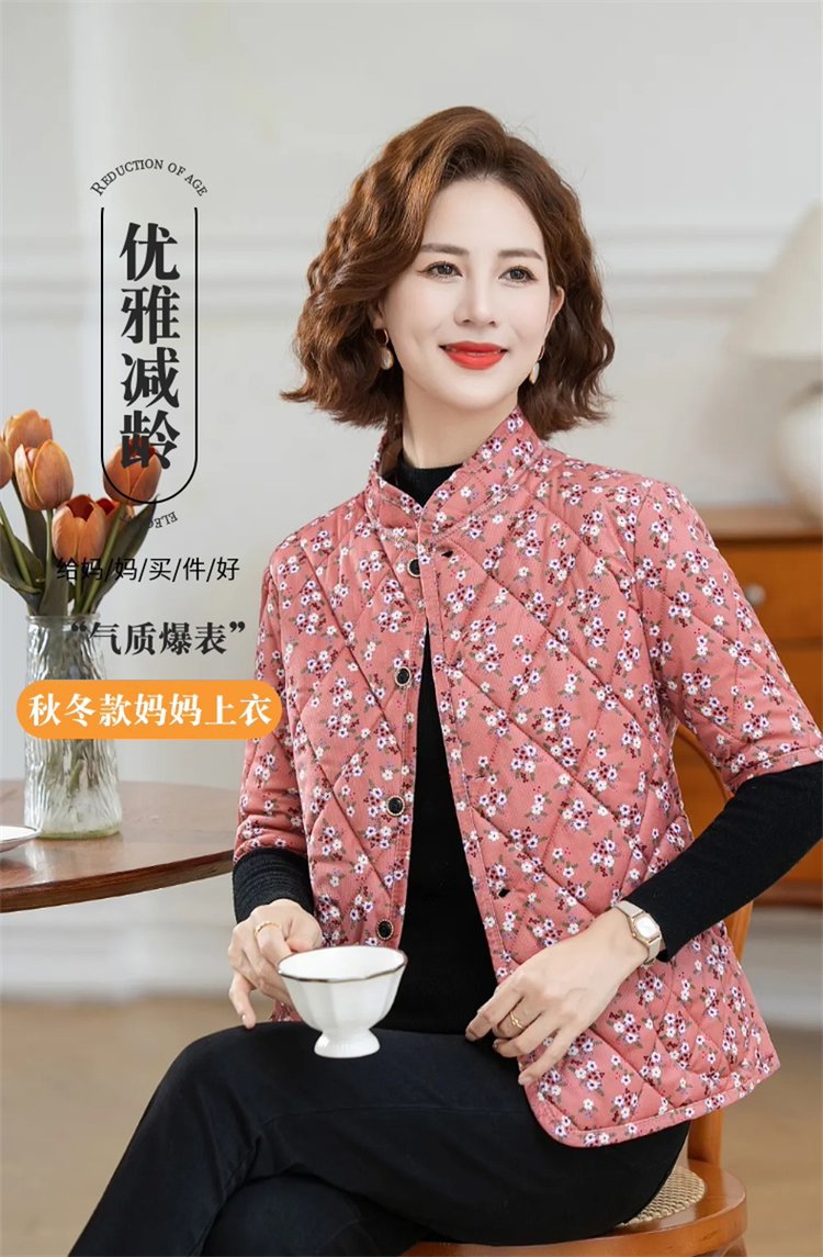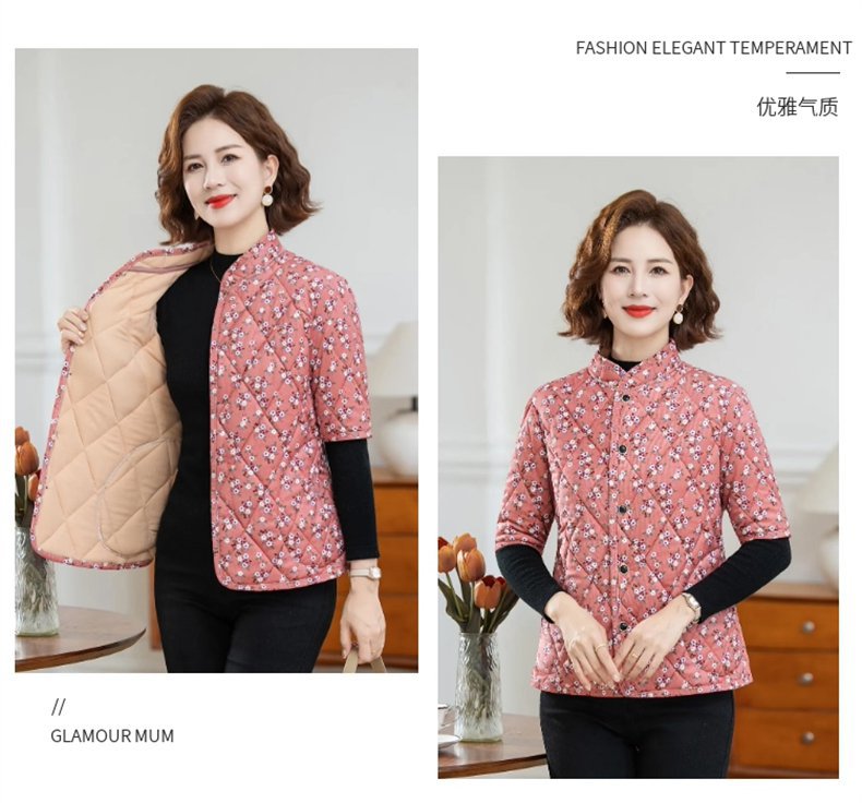 中高年婦人服秋冬中袖小綿服とベルベットの厚い立襟綿服おばあちゃんの短い冬の保温コート