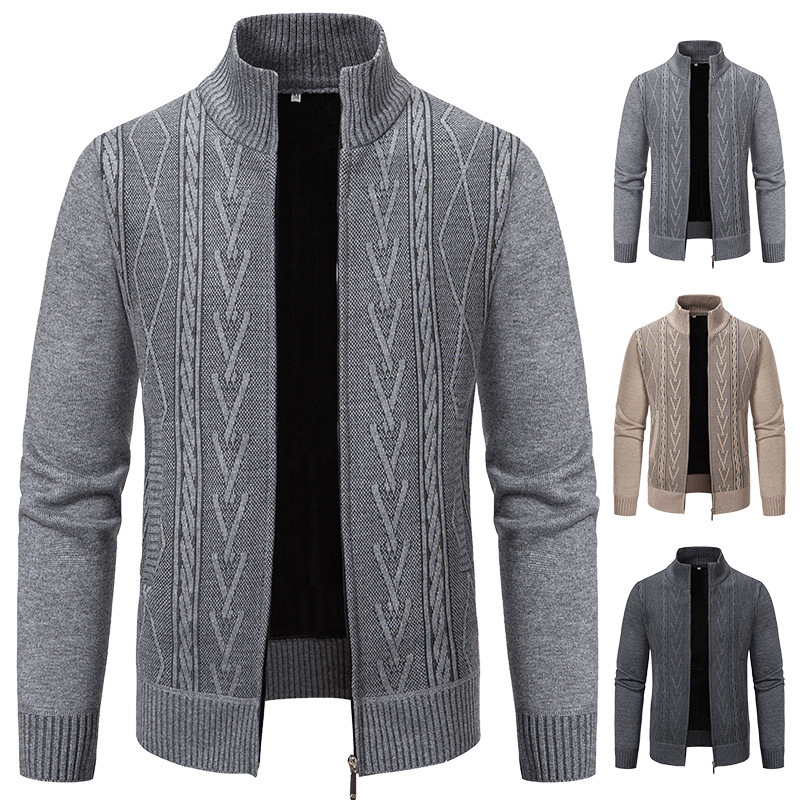 外贸专供男士立领毛衣开衫冬季新款加绒加厚外穿针织衫外套批发男