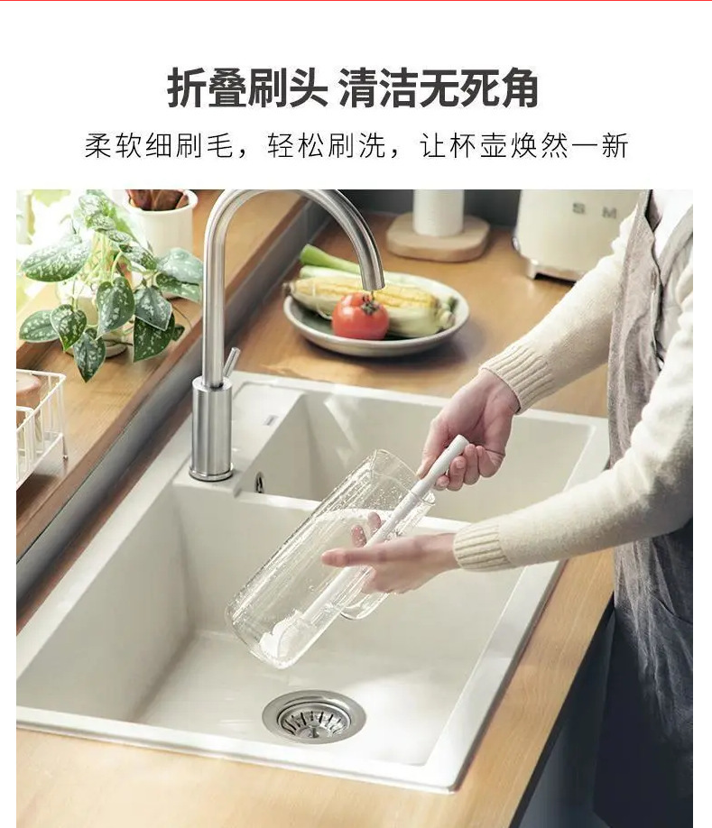 批发家用长柄奶瓶水杯多功能清洁刷神器可折叠无死角软毛硅胶杯刷