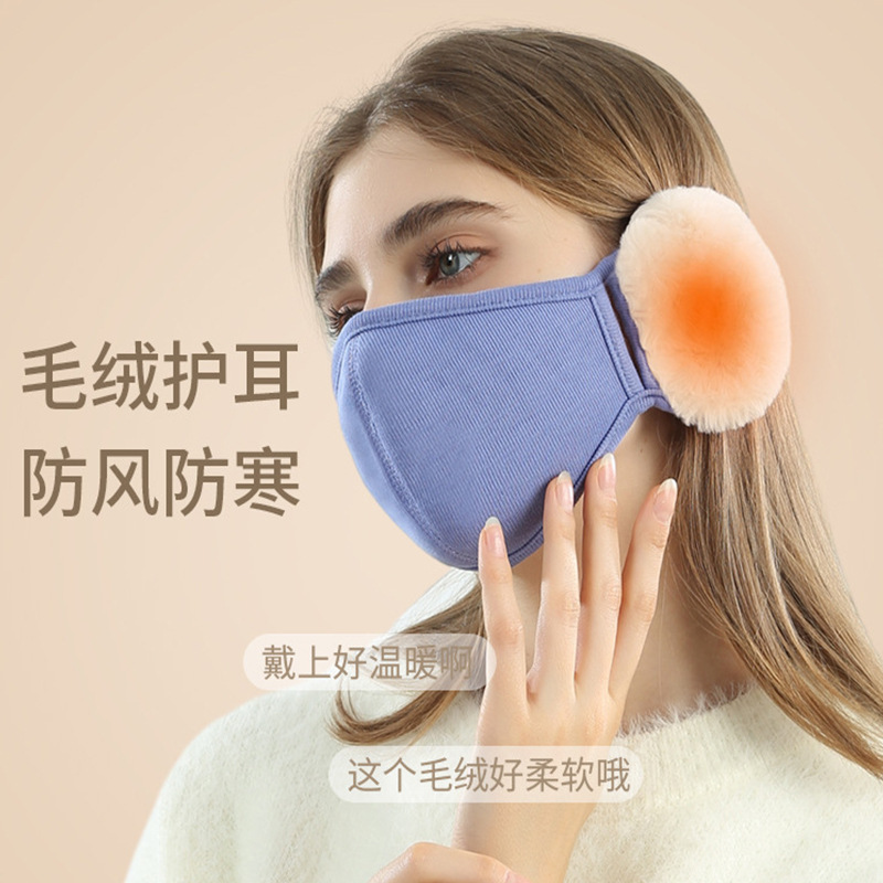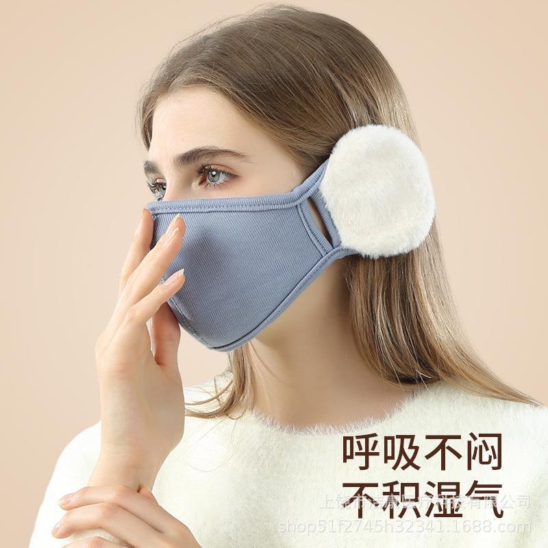 新型保温マスク耳カバー付き女性秋冬かわいいぬいぐるみ防風防寒耳マスク二合一マスク
