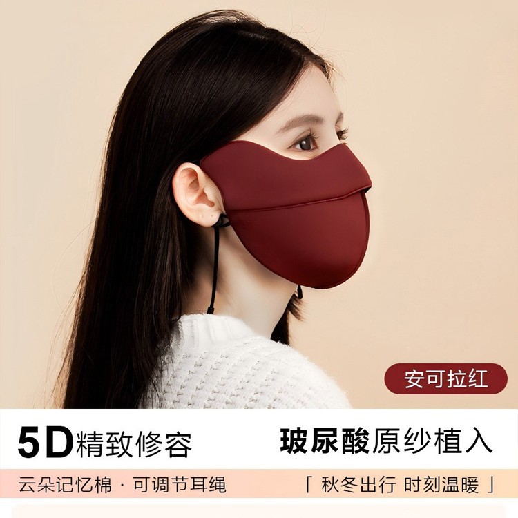 冬用5D日焼け止め保温マスク 女性用 裏起毛・綿入り 小顔効果 立体感 高見え 防寒 目元保護 多用途