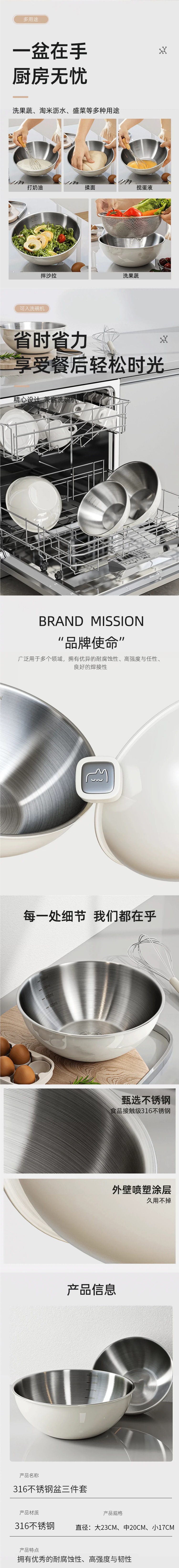 规格 奶油白小号17CM【可打蛋/拌沙拉】,奶油白【316不锈钢三件套】料理盆【大/中/小】,奶油白大号23CM【可和面/拌沙拉】,奶油白中号20CM【可和面/拌沙拉】