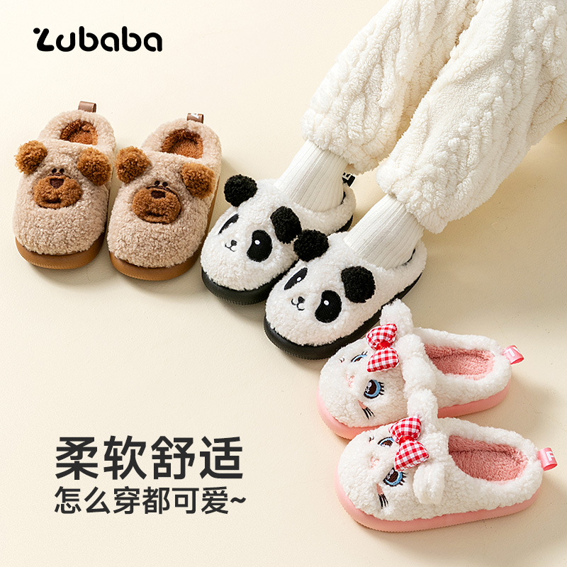 儿童棉拖鞋秋冬季男女童卡通熊猫室内家居拖鞋防滑宝宝中大童棉拖