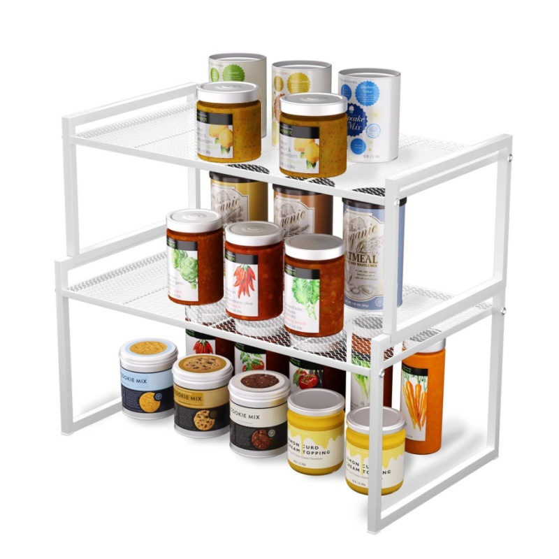 2個セットのキッチンキャビネットオーガナイザー、積み重ね可能な頑丈な金属製カウンタートップ収納ラック、キッチン収納ラック