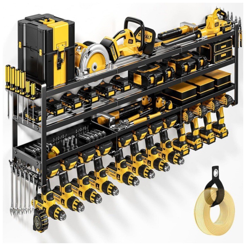 4層式ヘビーデューティー金属製電動工具収納ボックス 壁掛け式電動工具ホルダー ガレージツール収納ラック