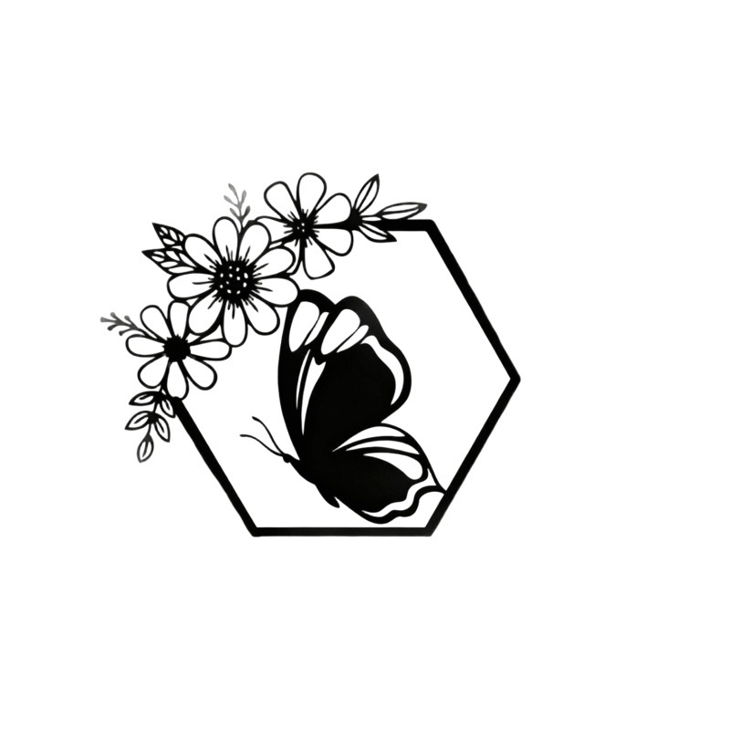 金属六角形蝶植物壁掛け装飾 鉄製黒色壁掛け装飾 クリエイティブな人気壁掛け装飾