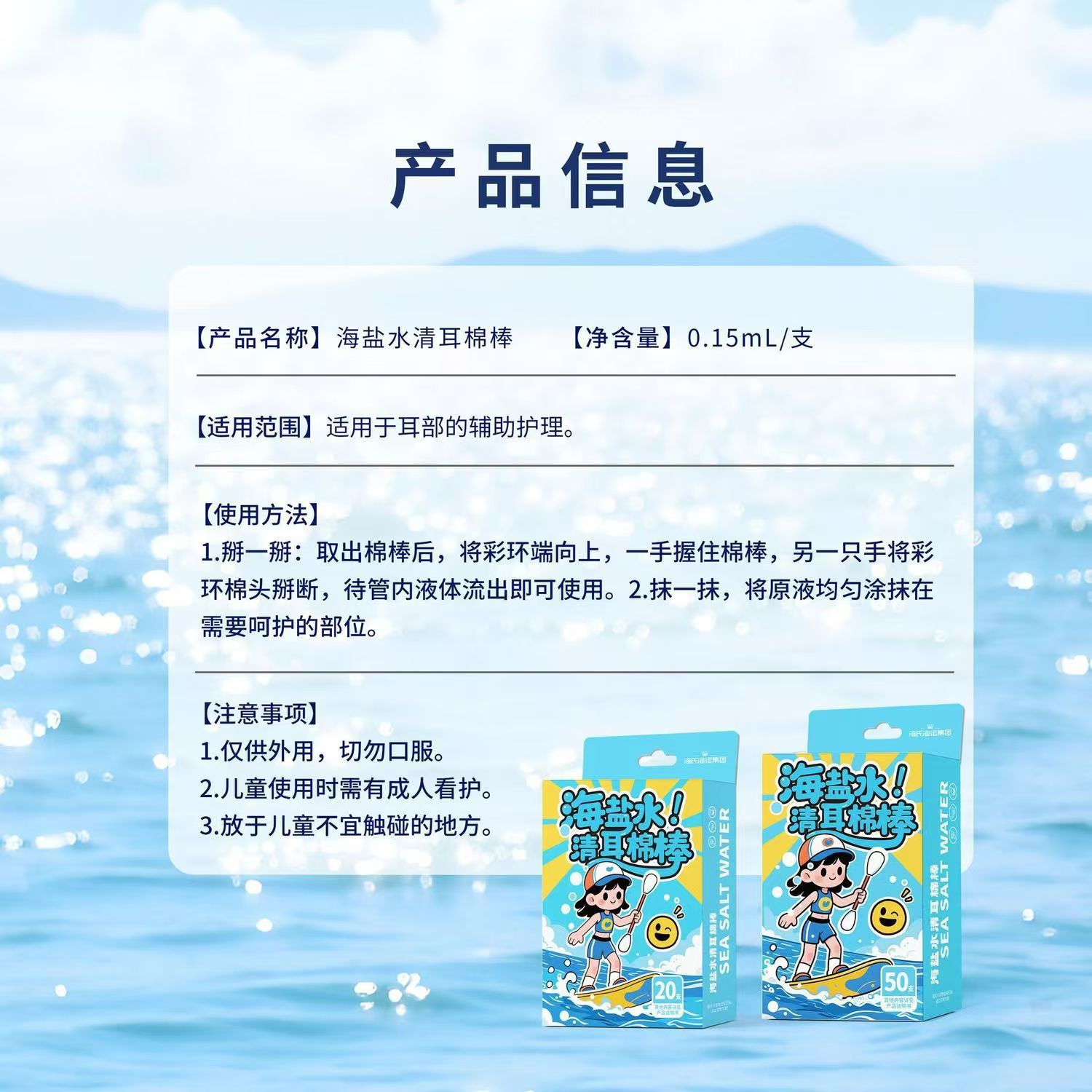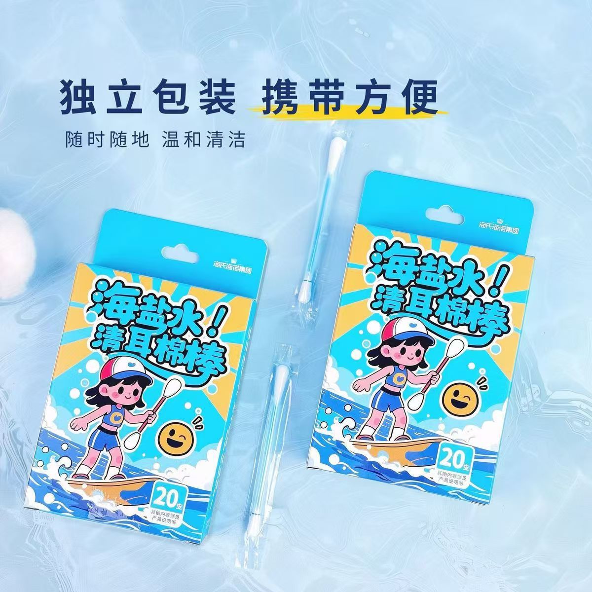 海氏海诺海盐水清耳棉棒一次性棉签双头可用家用外出便携独立包装