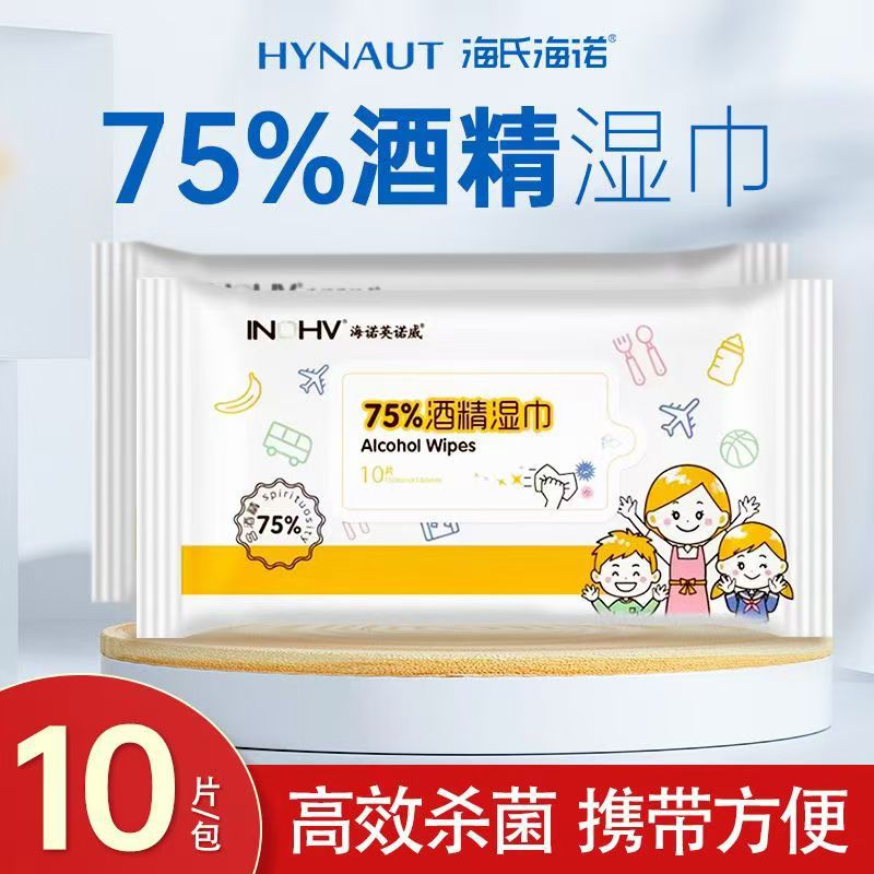 海氏海诺75% アルコール消毒ウェットティッシュ小包装ウェットティッシュ家庭用携帯抽出式10枚/バッグ