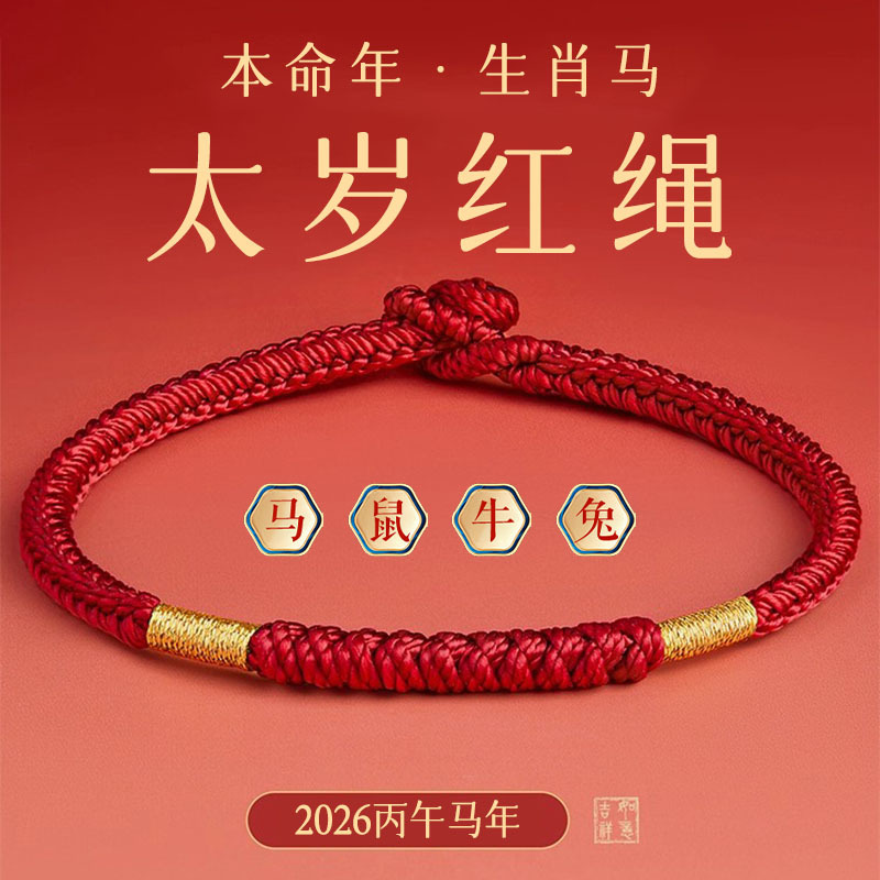 2026本命年红绳手链属马鼠牛兔红色编织绳太岁护身符男女马年手绳