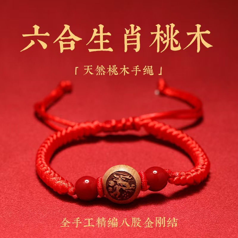2025桃の木の生肖の赤い縄のブレスレットの男女の本命年の手編みの縄の赤ちゃんの子供のカップルは代行して承認します。
