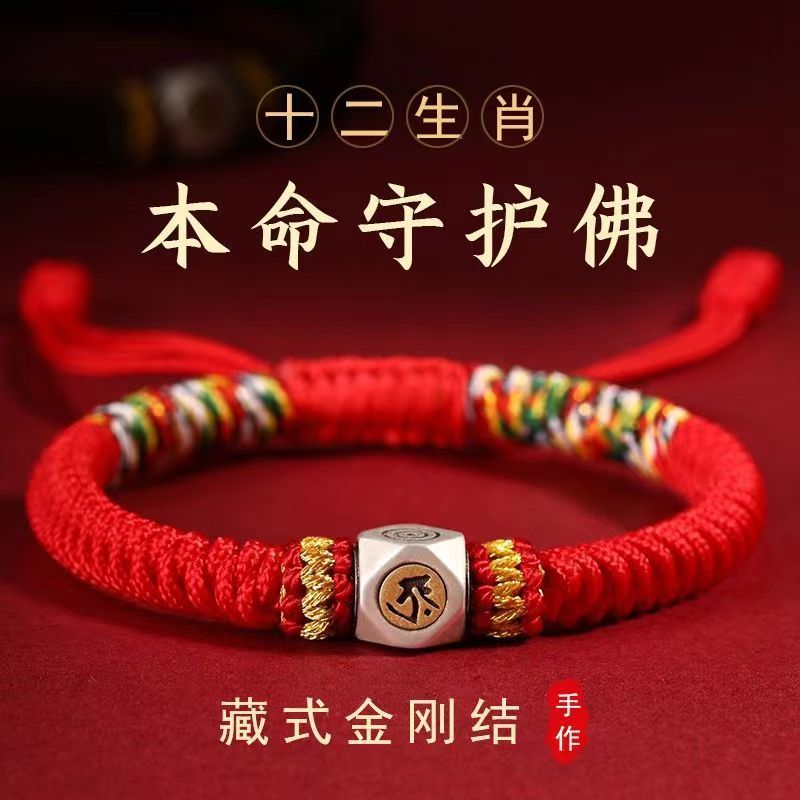 2026年馬年新作、本命年ウサギの赤い紐ブレスレット、チベット式金剛結び手編み赤い紐、一件代発(卸売)