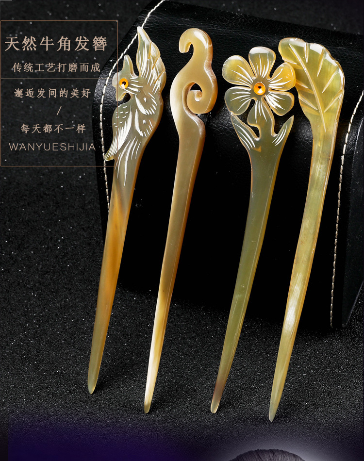 天然牛角ヘアピン古典風黄牛角ヘアピン漢服アクセサリーヘアピン髪アクセサリーメーカー直販