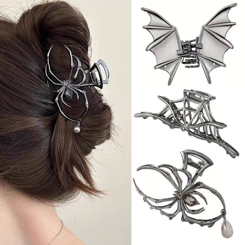 クロスボーダーメタルバットクリップ、面白いヘアクリップ、女の子用シンプルな後頭部に半分結んだヘアクリップ、サメクリップヘアクリップ