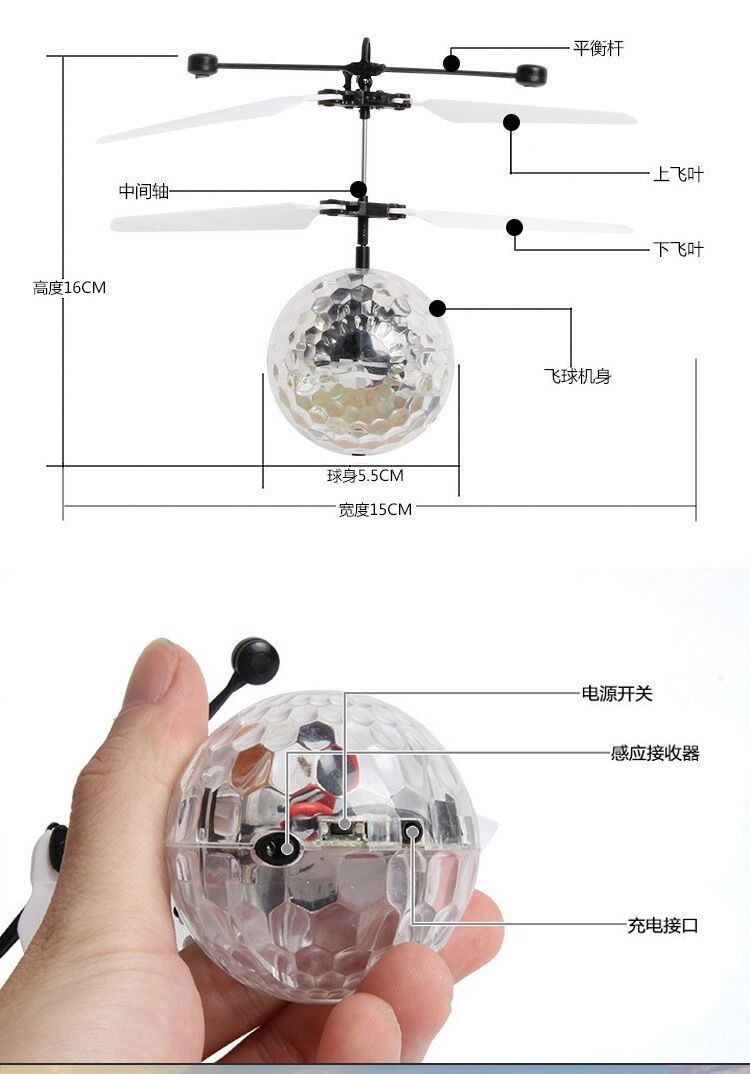 跨境发光水晶飞行球智能感应飞行器悬浮手势遥控飞机儿童玩具批发