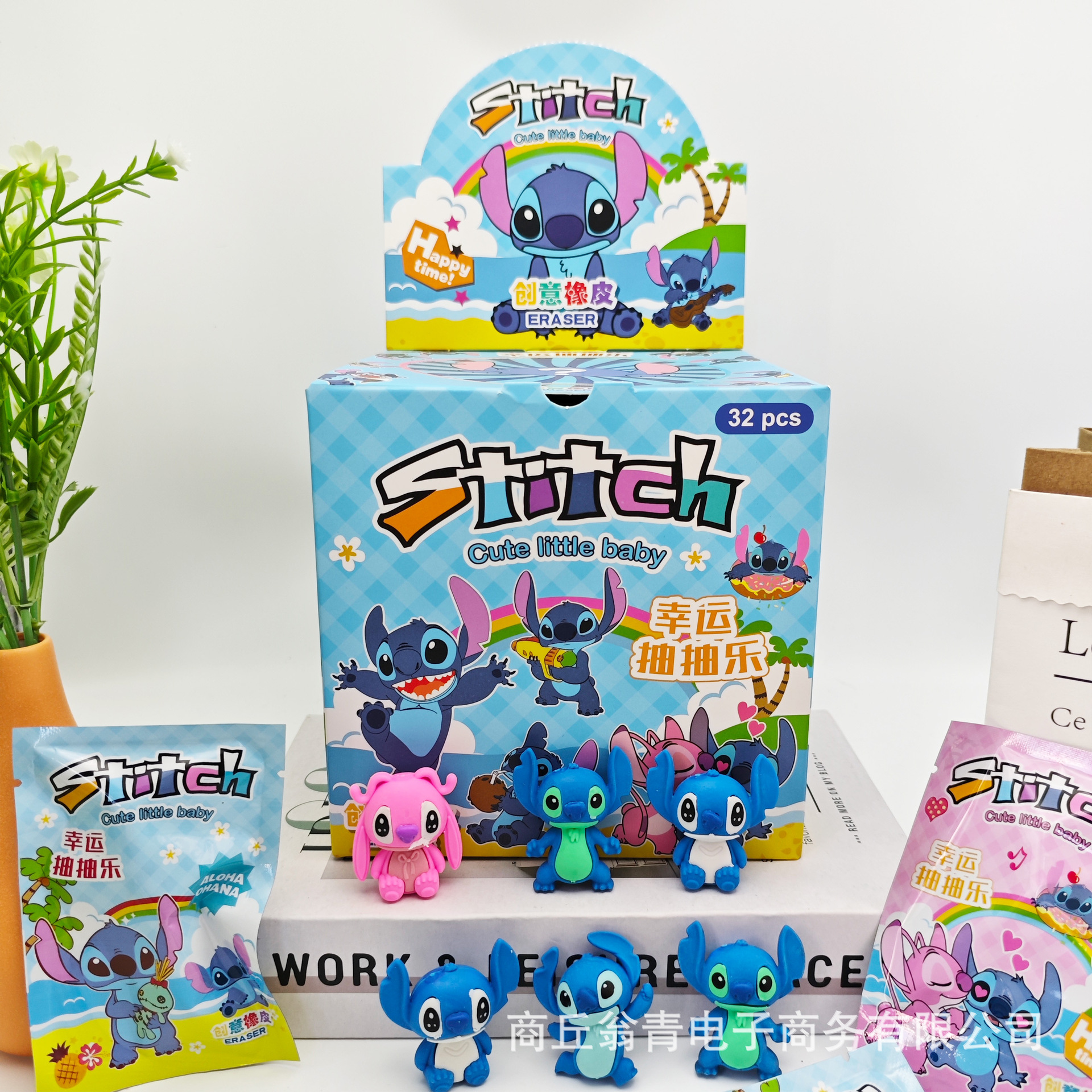 跨境史迪仔幸运抽抽乐盲袋橡皮擦可爱Stitch惊喜礼袋可拆卸橡皮擦