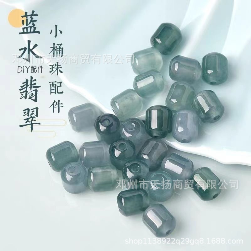 翡翠藍水A品桶珠路通冬瓜珠飾品半製品diy手串ネックレスイヤリング