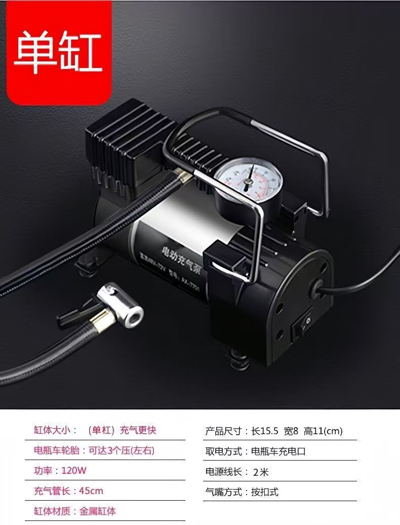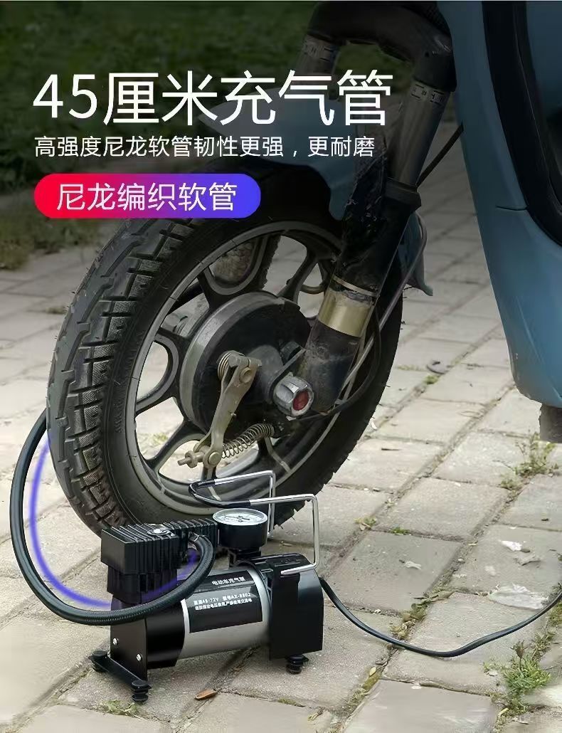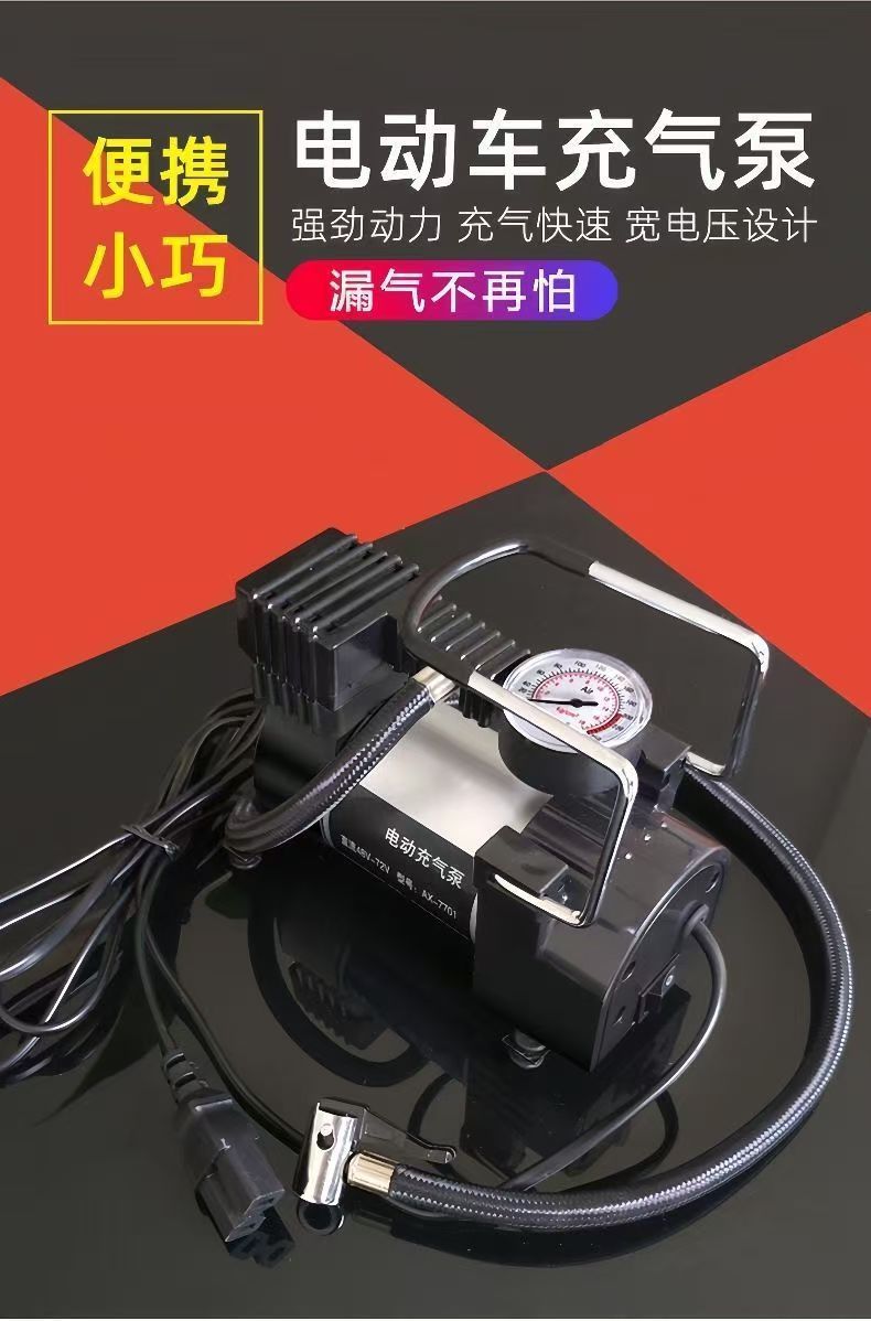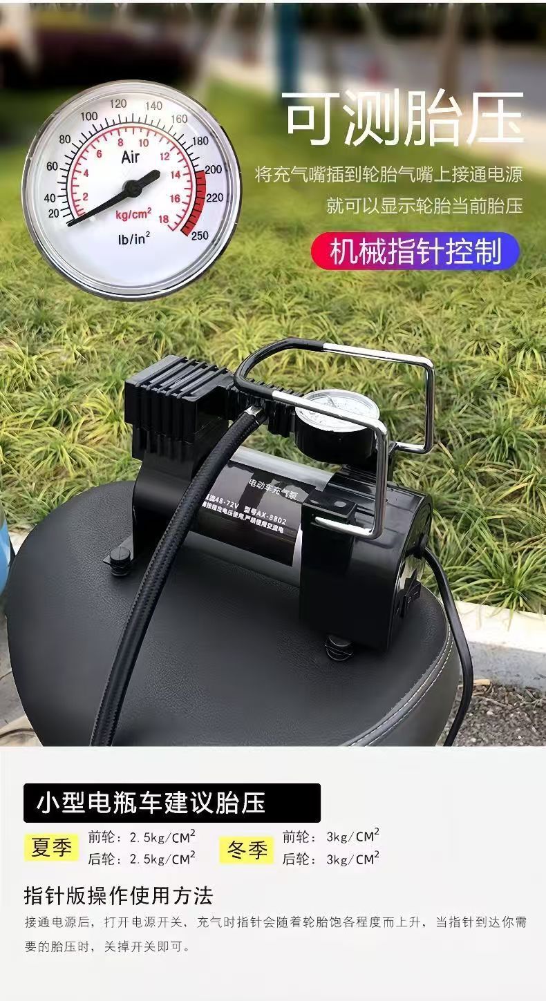德国进口电瓶车充气泵48v60v72v通用电动车打气筒小巧便携轮胎充