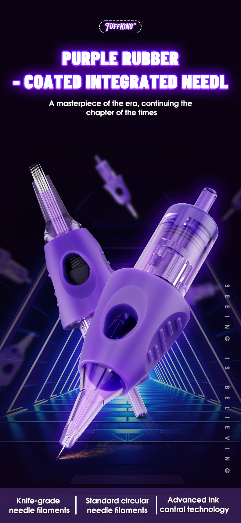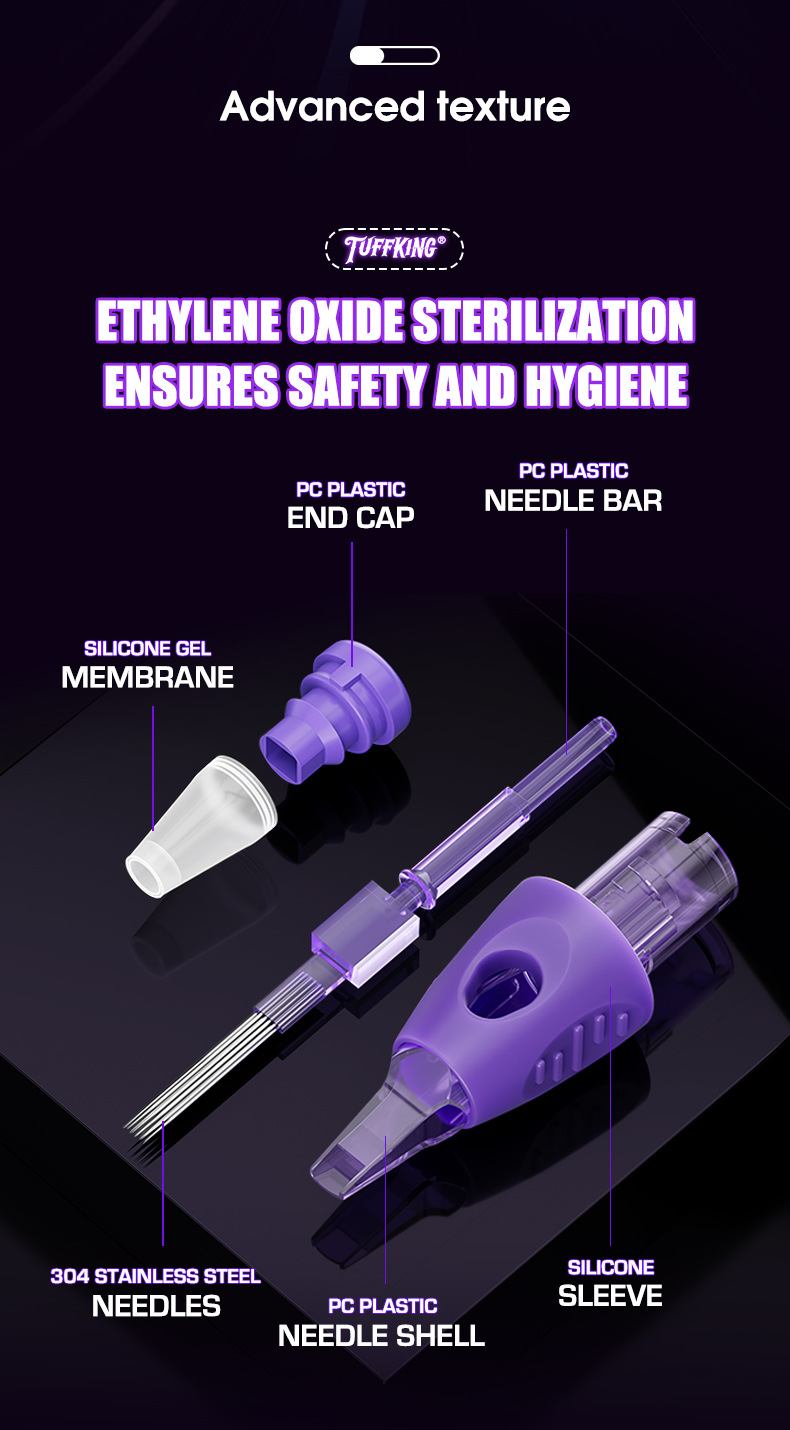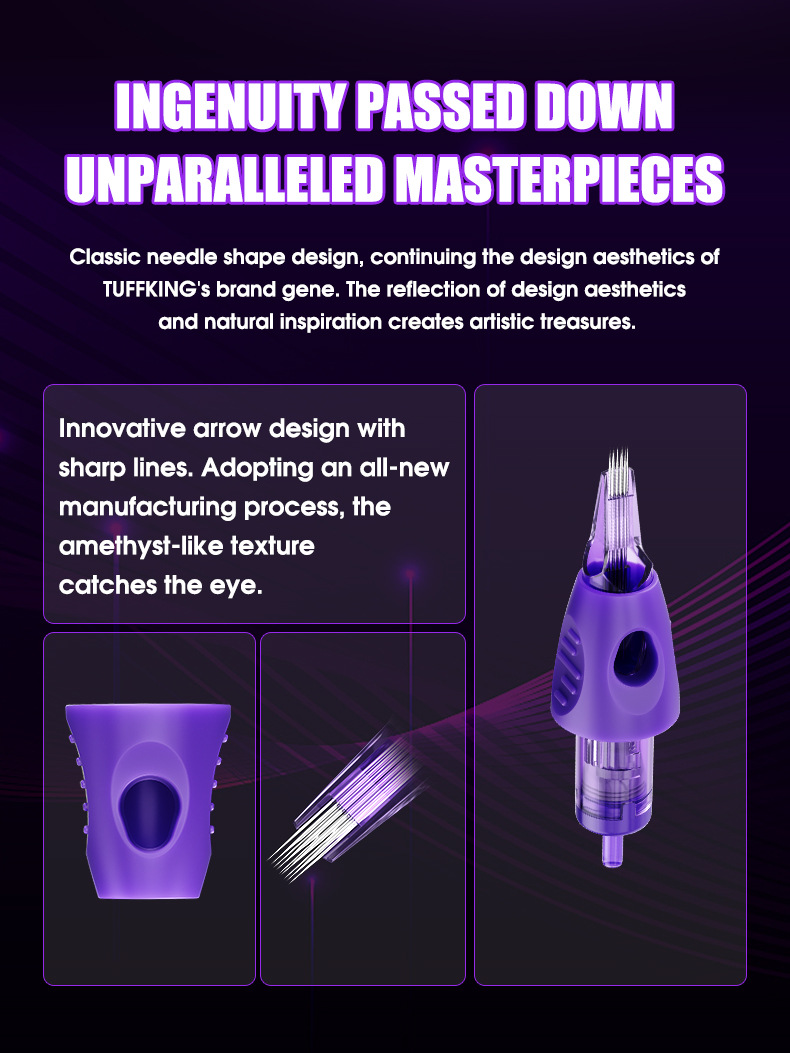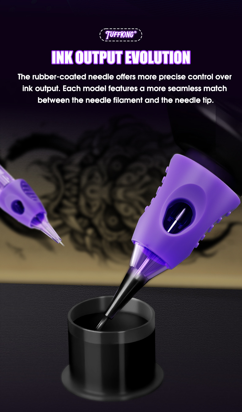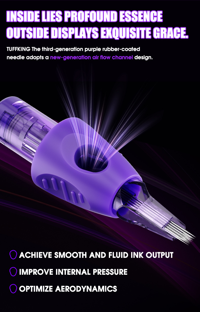 Tuffking纹身一体针紫色包胶针收口圆针割线打雾弧排刺青纹身针