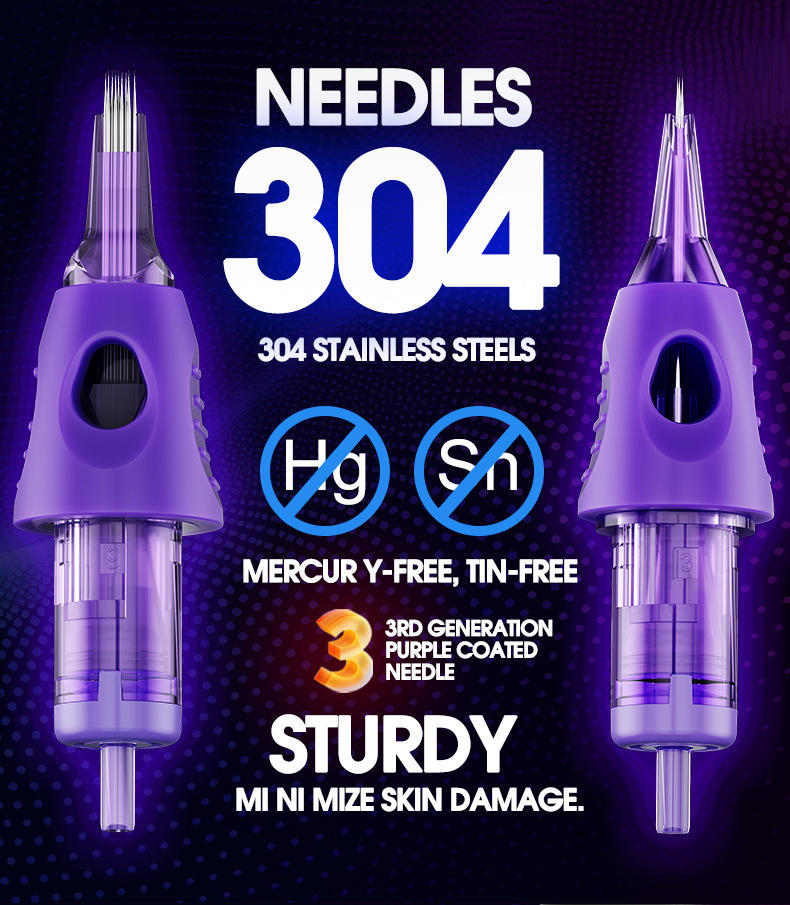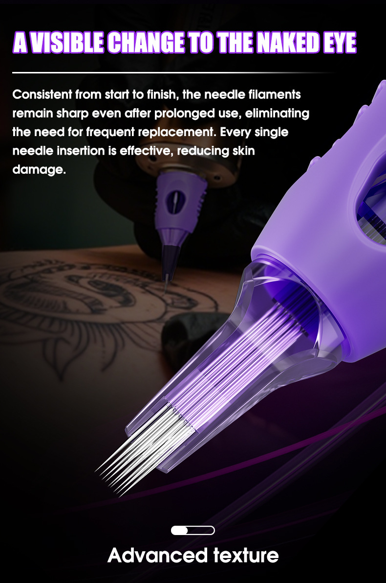 爆発的な紫色の一体的な紋章の針は糸を切って霧を打って20本の紋章の刺繍の刺青の三日月の紫の針の刺青の器材を打ちます。