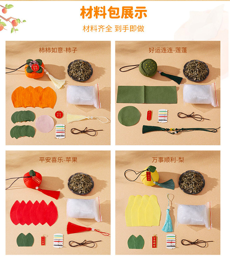 感謝祭活動用香袋DIY材料 手作り柿柿如意艾草蚊よけペンダント