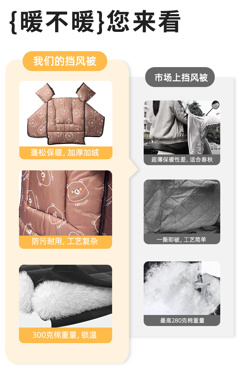 冬季挡风被加绒加厚防风被小型电动车摩托车加大加宽挡风被冬季厚