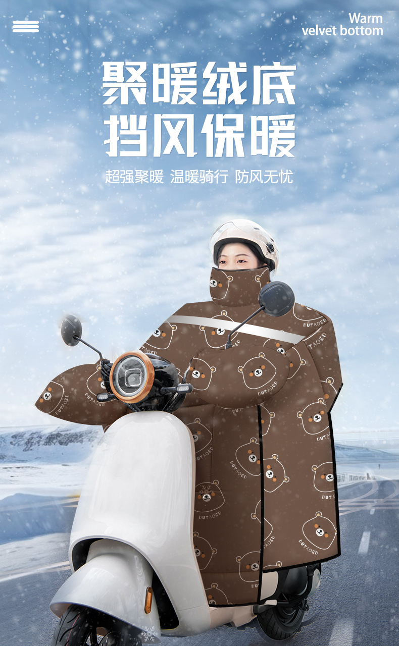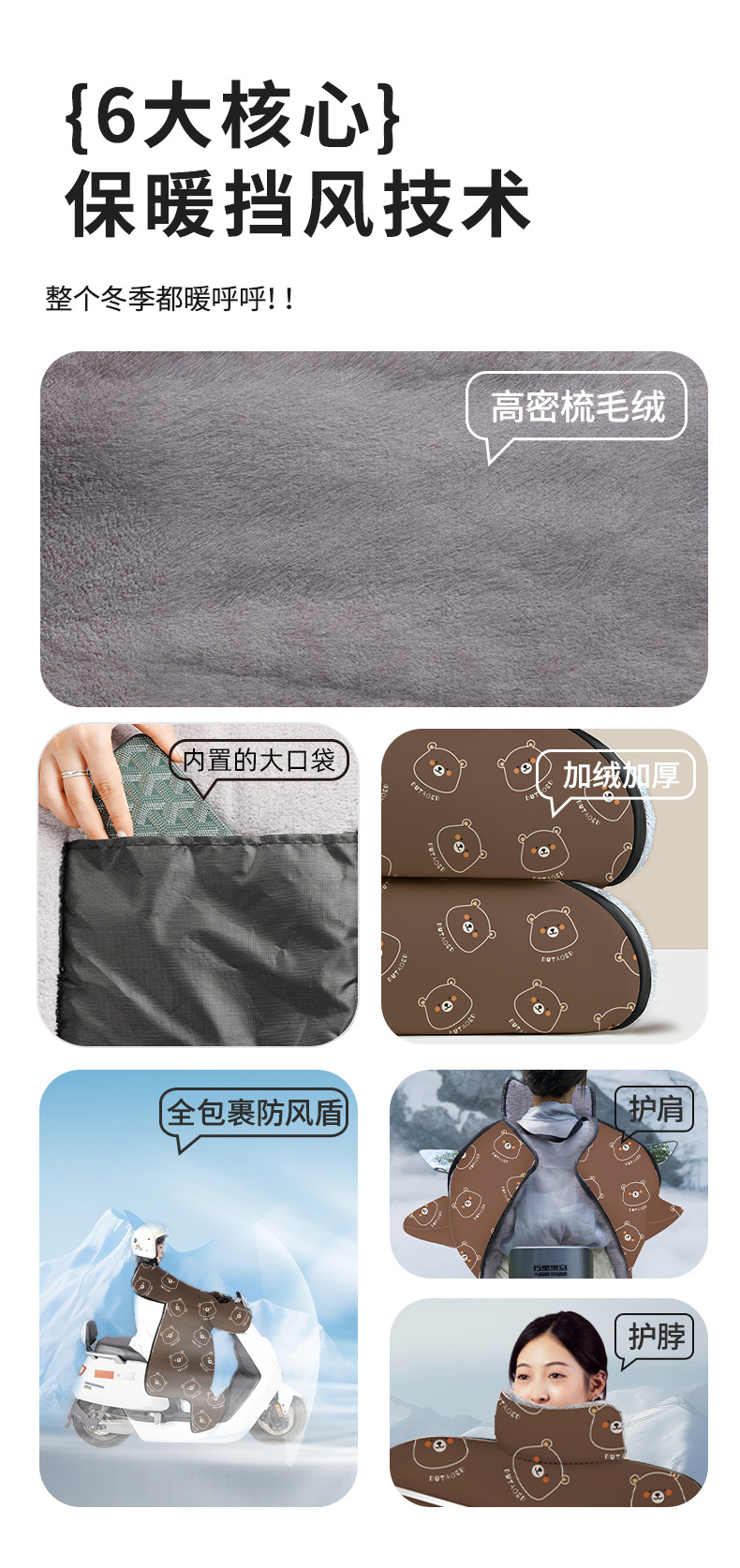 钢化膜挡风被冬季加厚电动车挡风被冬季斗篷款加厚加绒电车挡风被