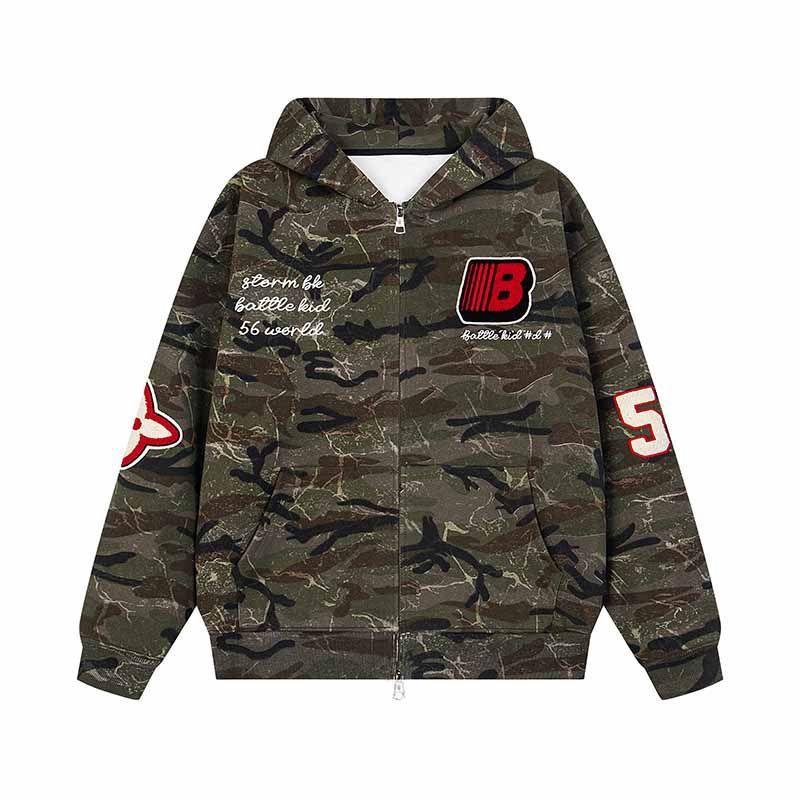 美式高街雪花星星刺绣连帽卫衣男女秋冬简约宽松小众设计感外套