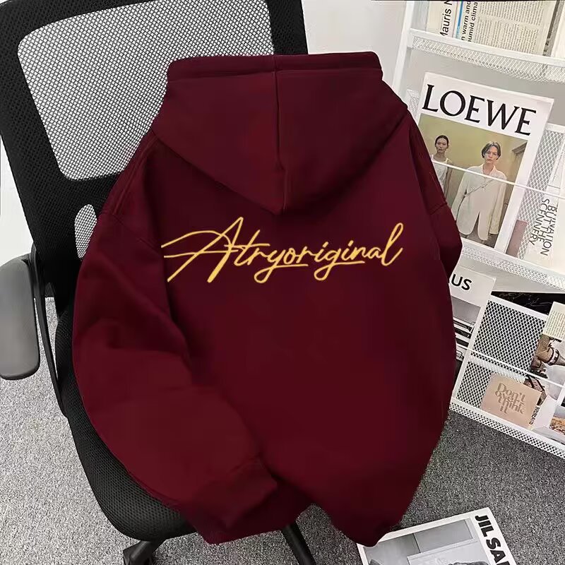 重磅美式黑色卫衣男生秋冬加绒新款高街印花外套潮牌高级感连帽衫