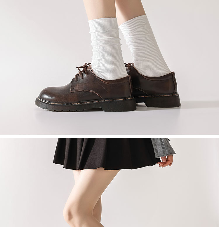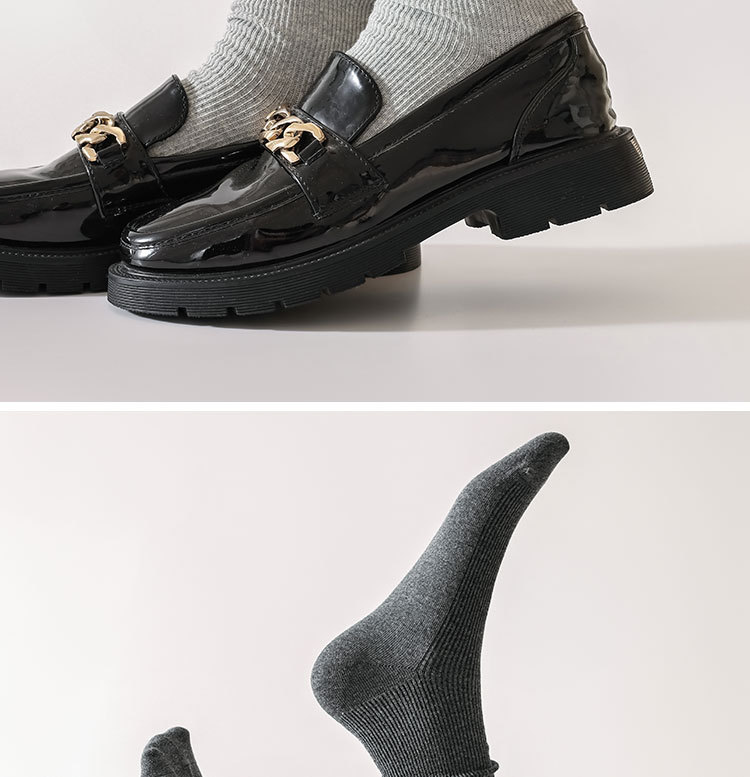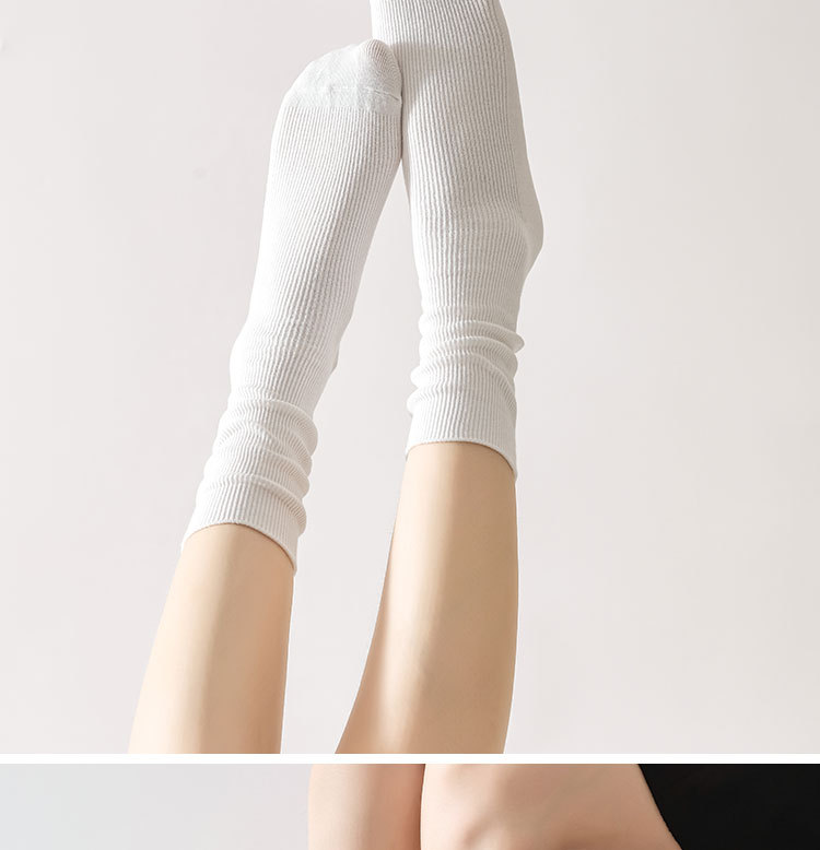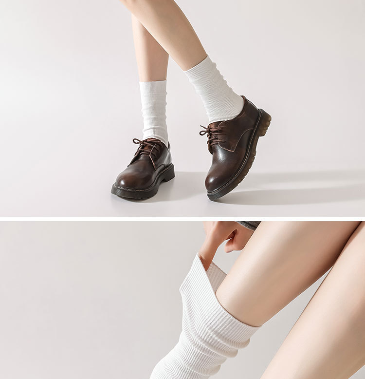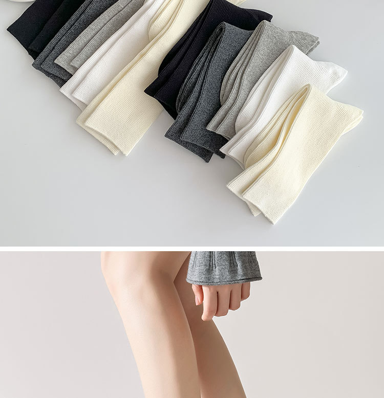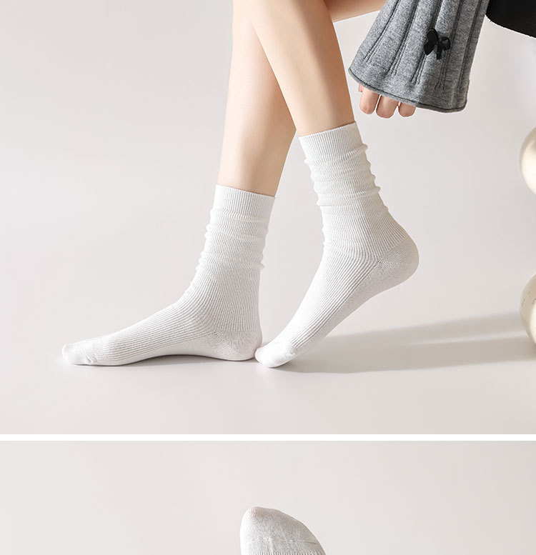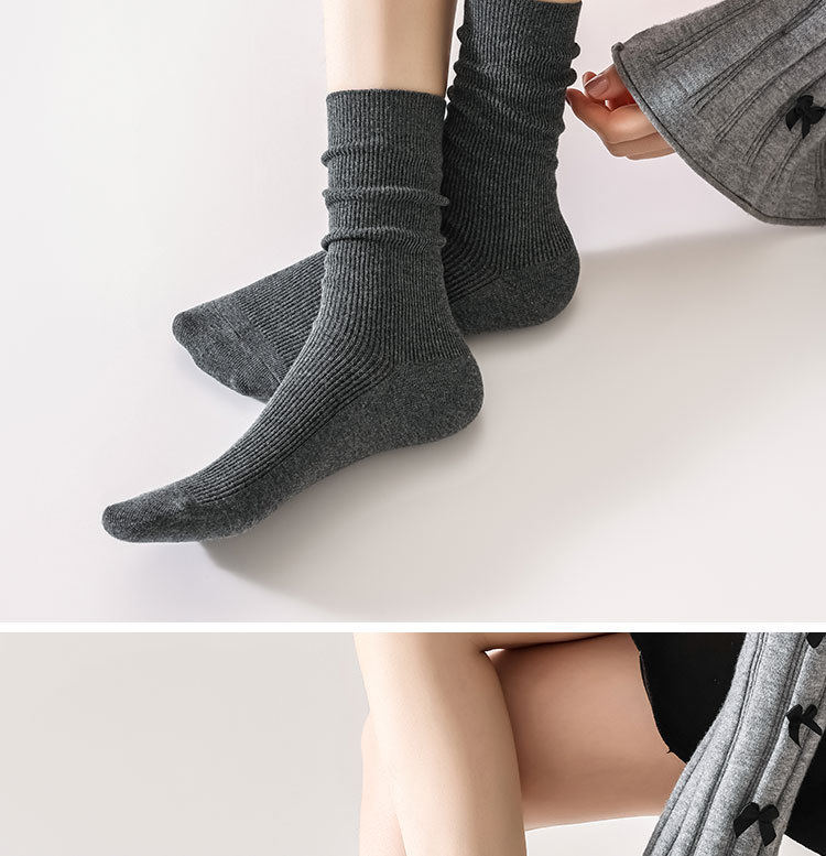 双针纯棉中筒袜子女士四季款JK长袜显瘦及膝小腿袜黑白灰色堆堆袜