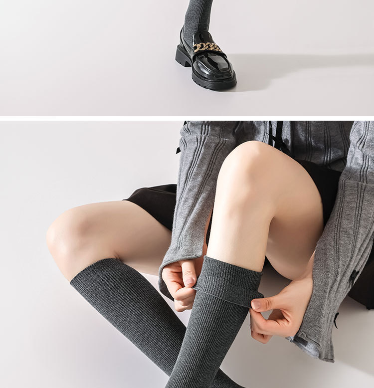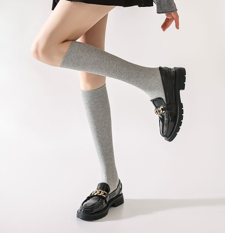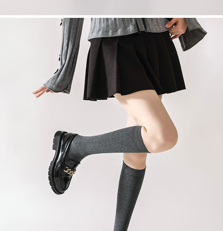 小腿袜子女长筒袜春秋中筒袜纯棉高筒压力显瘦JK棉袜冬季灰色长袜